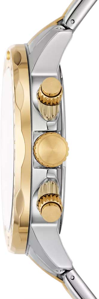 Часы Fossil BQ2707 c хронографомХронографФункция позволяет измерять отрезки времени с особой точностью: часы, минуты, секунды. Верным признаком хронографа является наличие на циферблате 3 дополнительных окошек-счётчиков., кварцевый механизм с высокой точностью. Минеральное стеклоМинеральное стеклоМинеральное стекло представляет собой искусственно выращенный минерал кварца. Такое стекло отличается особой устойчивостью к повреждениям и царапинам. Уступает по некоторым качествам сапфировому стеклу. устойчивое к мелким механическим повреждениям. 50 метров, позволит защитить корпус от случайных брызг или капель дождя. Корпус часов изготовлен из стали. Стрелки и метки с люминесцентным покрытиемЛюминесцентное покрытиеПозволяет считывать показания времени в темноте. Производители наносят на стрелки, часовые индексы, безель или поверхность циферблата светонакопительный состав, дающий холодное свечение.. Стальной браслет с частичным IP-покрытиемIP-покрытиеМетод ионного напыления. Демонстрирует повышенную устойчивость к истиранию, окислению и химическим веществам. Под воздействием высокого давления и температуры около 1500°C молекулы металла надёжно соединяются с частицами корпуса часов. на раскладной застёжкеРаскладная застёжкаТакой тип застёжки используется только на браслетах из металла. Она никогда не раскрывается полностью, происходит разделение на 2 и более частей. Раскладывающая застёжка снизит вероятность потери часов к минимуму.. БезельБезельВнешний ободок, закрепляющий стекло. В спортивных часах так называется поворотное кольцо с делениями на циферблате, выполняет роль таймера – замеряет отрезки времени на шкале. Неподвижный безель – элемент декора. Однонаправленно вращающийся безель на дайверских часах позволяет фиксировать моменты погружения и выныривания на поверхность. с IP-покрытиемIP-покрытиеМетод ионного напыления. Демонстрирует повышенную устойчивость к истиранию, окислению и химическим веществам. Под воздействием высокого давления и температуры около 1500°C молекулы металла надёжно соединяются с частицами корпуса часов..