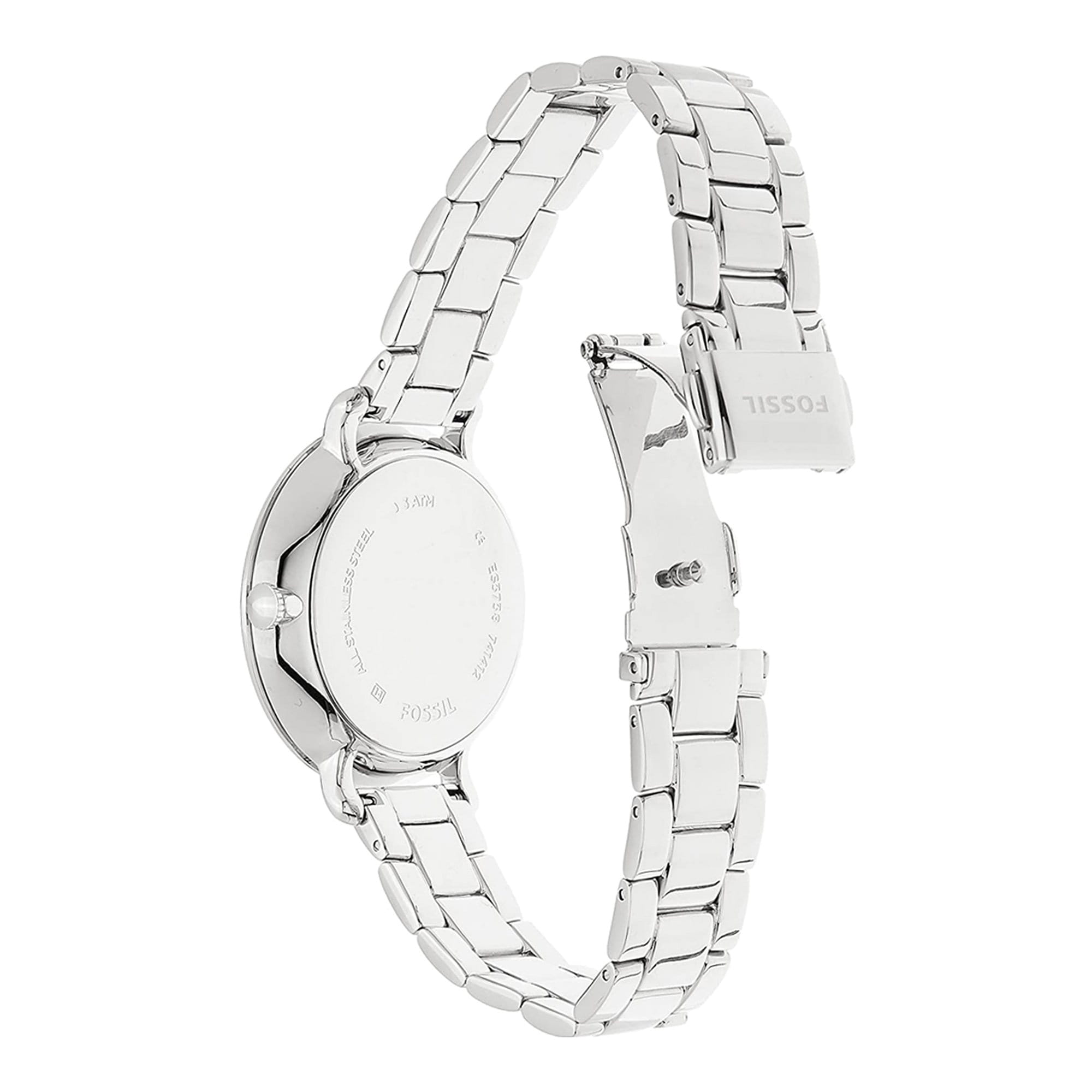 Женские наручные часы Fossil ES3738. Корпус часов изготовлен из нержавеющей стали. Минеральное стеклоМинеральное стеклоМинеральное стекло представляет собой искусственно выращенный минерал кварца. Такое стекло отличается особой устойчивостью к повреждениям и царапинам. Уступает по некоторым качествам сапфировому стеклу. устойчивое к появлению царапин, обладающее высокой прозрачностью. Стальной браслет на раскладной застёжке. Класс водозащиты: 50 метров, позволит защитить корпус от случайных брызг или капель дождя.