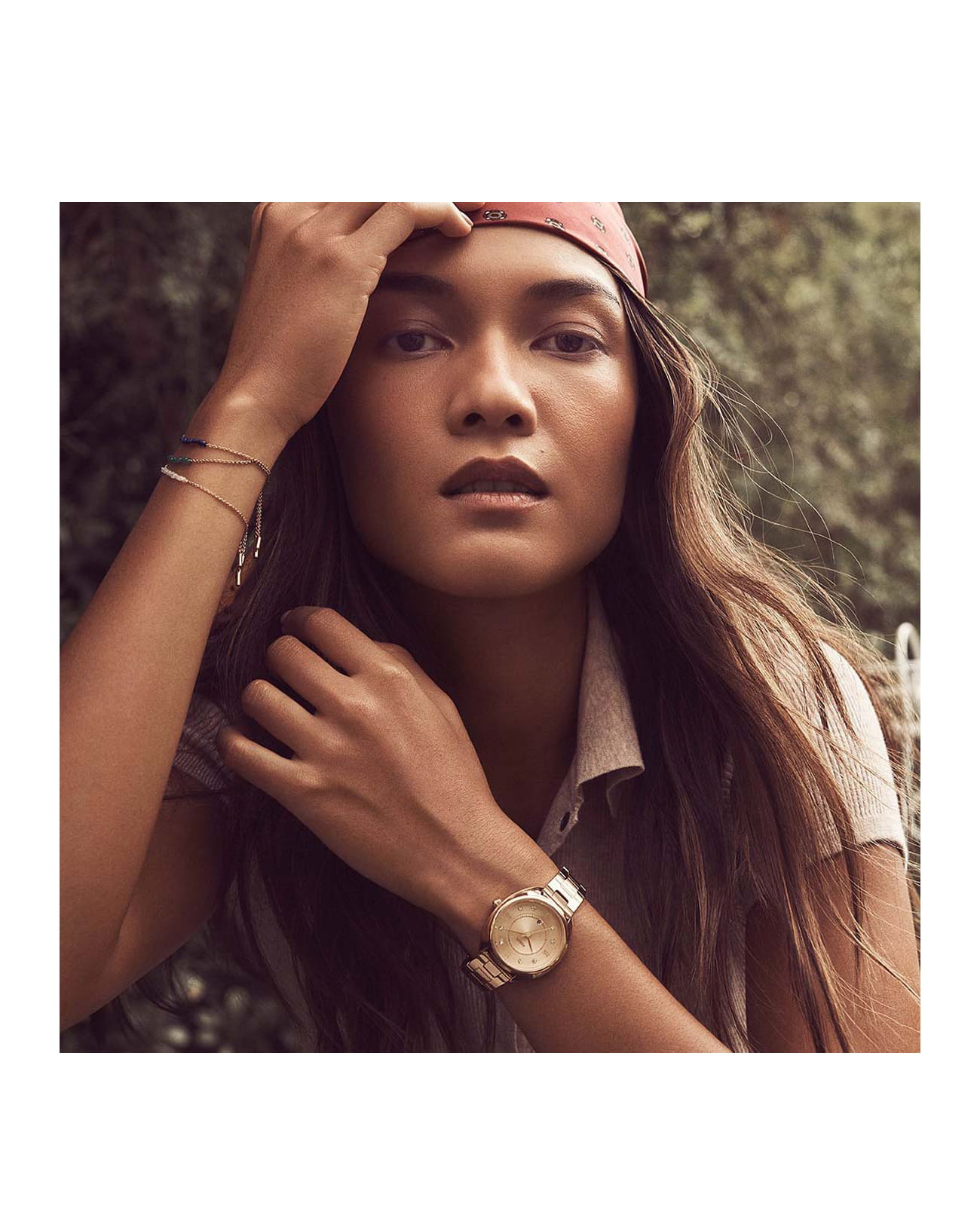 Fossil Gabby ES5070 - кварцевые часы с базовой трёхстрелочной индикацией и датой в положении 6 часов. Корпус 34 мм выполнен из стали с IP-покрытиемIP-покрытиеМетод ионного напыления. Демонстрирует повышенную устойчивость к истиранию, окислению и химическим веществам. Под воздействием высокого давления и температуры около 1500°C молекулы металла надёжно соединяются с частицами корпуса часов. под розовое золото. Водозащита 50WR подходит для повседневного контакта с водой. Розовый циферблат с комбинированной разметкой: римские цифры и точечные метки с кристаллами. Установлено минеральное стеклоМинеральное стеклоМинеральное стекло представляет собой искусственно выращенный минерал кварца. Такое стекло отличается особой устойчивостью к повреждениям и царапинам. Уступает по некоторым качествам сапфировому стеклу., устойчивое к мелким повреждениям. Стальной браслет с покрытием и системой быстрой замены, фиксируется на раскладной застёжкеРаскладная застёжкаТакой тип застёжки используется только на браслетах из металла. Она никогда не раскрывается полностью, происходит разделение на 2 и более частей. Раскладывающая застёжка снизит вероятность потери часов к минимуму..