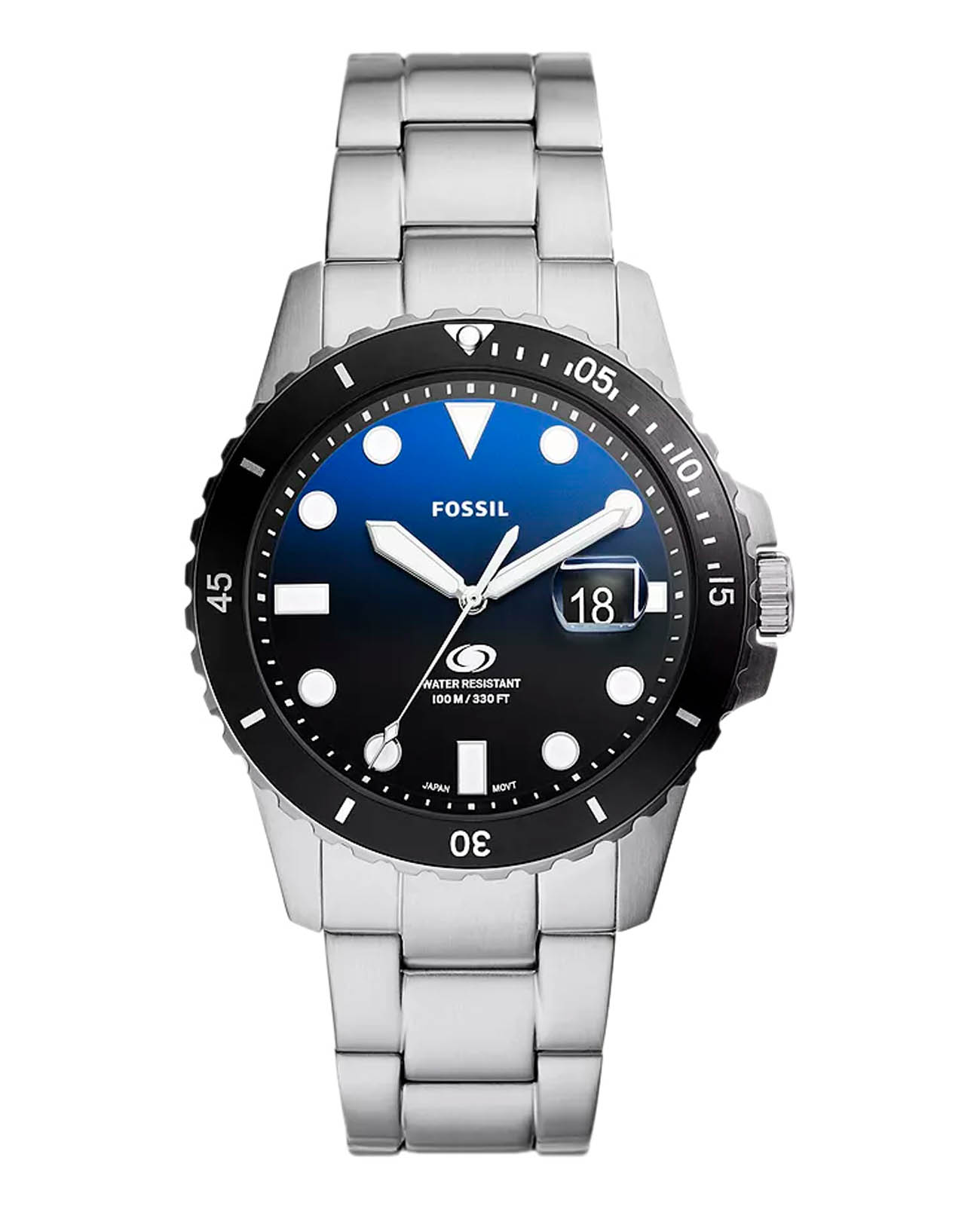 Мужские наручные часы с надёжным кварцевым механизмом Fossil Blue FS6038. Корпус и браслет часов изготовлены из нержавеющей стали. Вращающийся безельБезельВнешний ободок, закрепляющий стекло. В спортивных часах так называется поворотное кольцо с делениями на циферблате, выполняет роль таймера – замеряет отрезки времени на шкале. Неподвижный безель – элемент декора. Однонаправленно вращающийся безель на дайверских часах позволяет фиксировать моменты погружения и выныривания на поверхность. с IP-покрытиемIP-покрытиеМетод ионного напыления. Демонстрирует повышенную устойчивость к истиранию, окислению и химическим веществам. Под воздействием высокого давления и температуры около 1500°C молекулы металла надёжно соединяются с частицами корпуса часов.. Окошко даты находится в положении 3 часа. Стрелки и метки с люминесцентным покрытиемЛюминесцентное покрытиеПозволяет считывать показания времени в темноте. Производители наносят на стрелки, часовые индексы, безель или поверхность циферблата светонакопительный состав, дающий холодное свечение.. Класс водозащиты: 100 метров, позволит плавать, нырять и заниматься другими водными видами спорта. Стальной браслет на раскладной застёжкеРаскладная застёжкаТакой тип застёжки используется только на браслетах из металла. Она никогда не раскрывается полностью, происходит разделение на 2 и более частей. Раскладывающая застёжка снизит вероятность потери часов к минимуму..