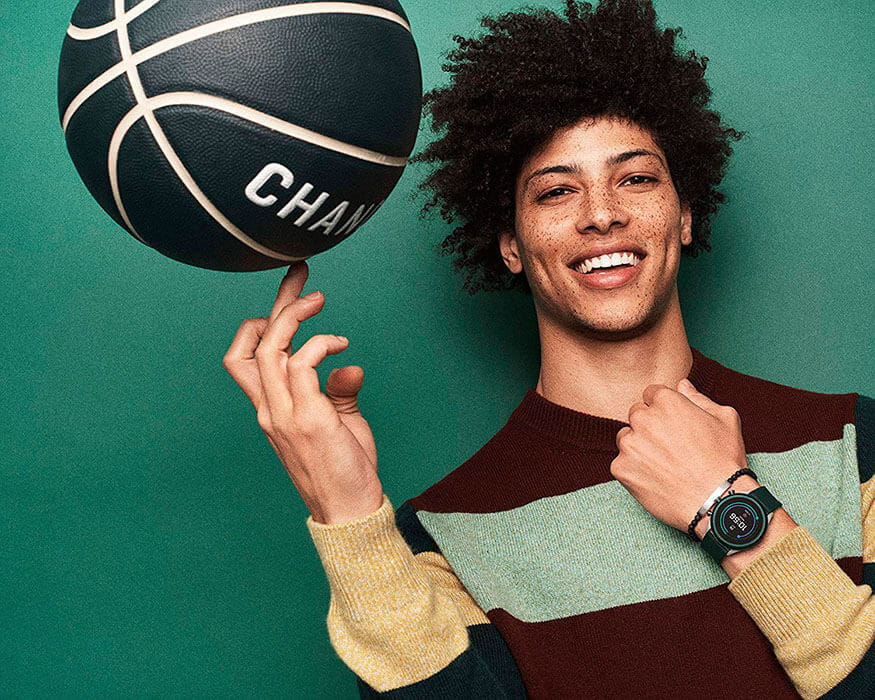 Циферблат защищён закаленным минеральным стеклом с тактильным управлением. Это позволяет быстро и легко пользоваться функционалом. Среди возможностей выделяют GPS, хронограф, компас, секундомер, альтиметр, отображение погоды, хранение и воспроизведение музыкальных треков, технологию Bluetooth для синхронизации со смартфоном. Следить за здоровьем помогут пульсометр, трекер активности, счётчик количества сожжённых калорий. Реализована технология бесконтактной оплаты Near Field Communication. Мягкий ремешок надёжно крепится на запястье.