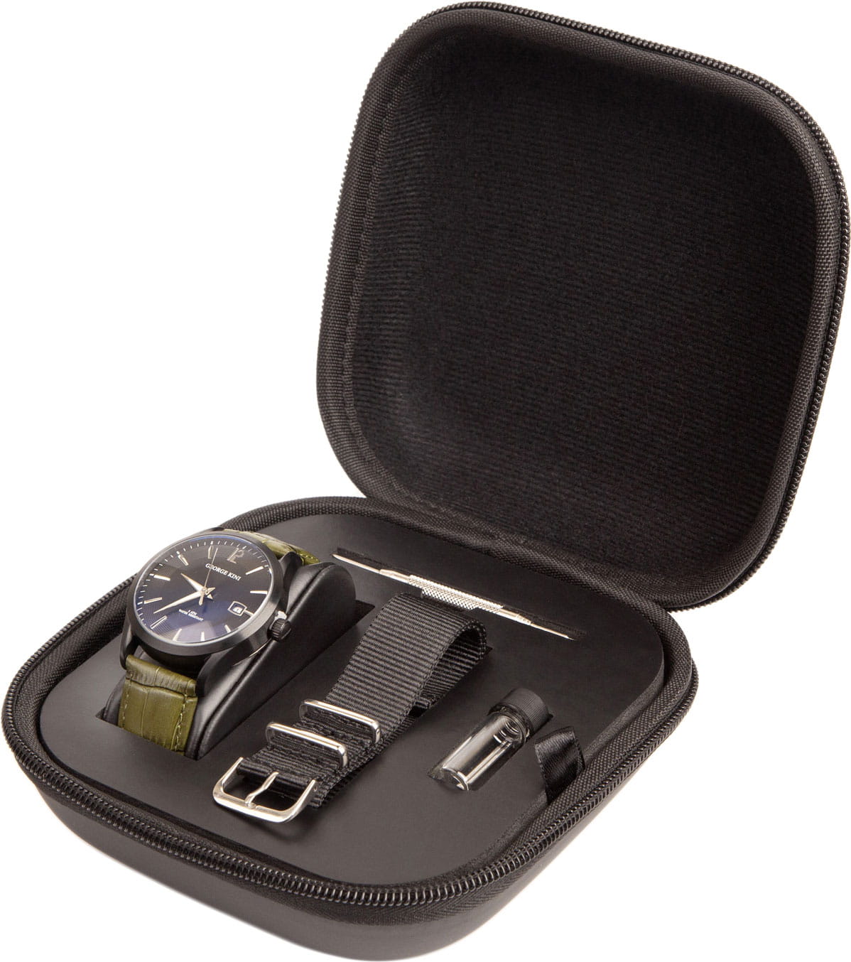 Дополнительный тканевый ремешок в стиле NATO Strap в комплекте и инструмент для его замены.