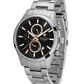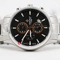 Мужские часы-хронографХронографФункция позволяет измерять отрезки времени с особой точностью: часы, минуты, секунды. Верным признаком хронографа является наличие на циферблате 3 дополнительных окошек-счётчиков. Greenwich Navigator GW 053.10.30, кварцевый механизм с высокой точностью. Минеральное стеклоМинеральное стеклоМинеральное стекло представляет собой искусственно выращенный минерал кварца. Такое стекло отличается особой устойчивостью к повреждениям и царапинам. Уступает по некоторым качествам сапфировому стеклу. устойчивое к появлению царапин, обладающее высокой прозрачностью. Корпус изготовлен из нержавеющей стали. В часах установлен надежный японский механизм с функциями: часы, минуты, секунды, дата, 24-х часовой индикатор. Окошко даты находится в положении 5 часов. Стрелки с люминесцентным покрытиемЛюминесцентное покрытиеПозволяет считывать показания времени в темноте. Производители наносят на стрелки, часовые индексы, безель или поверхность циферблата светонакопительный состав, дающий холодное свечение.. Класс водозащиты: 100 метров, позволит плавать, нырять и заниматься другими водными видами спорта. Стальной браслет на раскладной застёжкеРаскладная застёжкаТакой тип застёжки используется только на браслетах из металла. Она никогда не раскрывается полностью, происходит разделение на 2 и более частей. Раскладывающая застёжка снизит вероятность потери часов к минимуму..