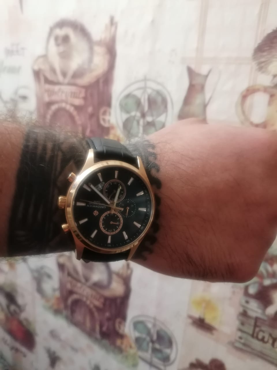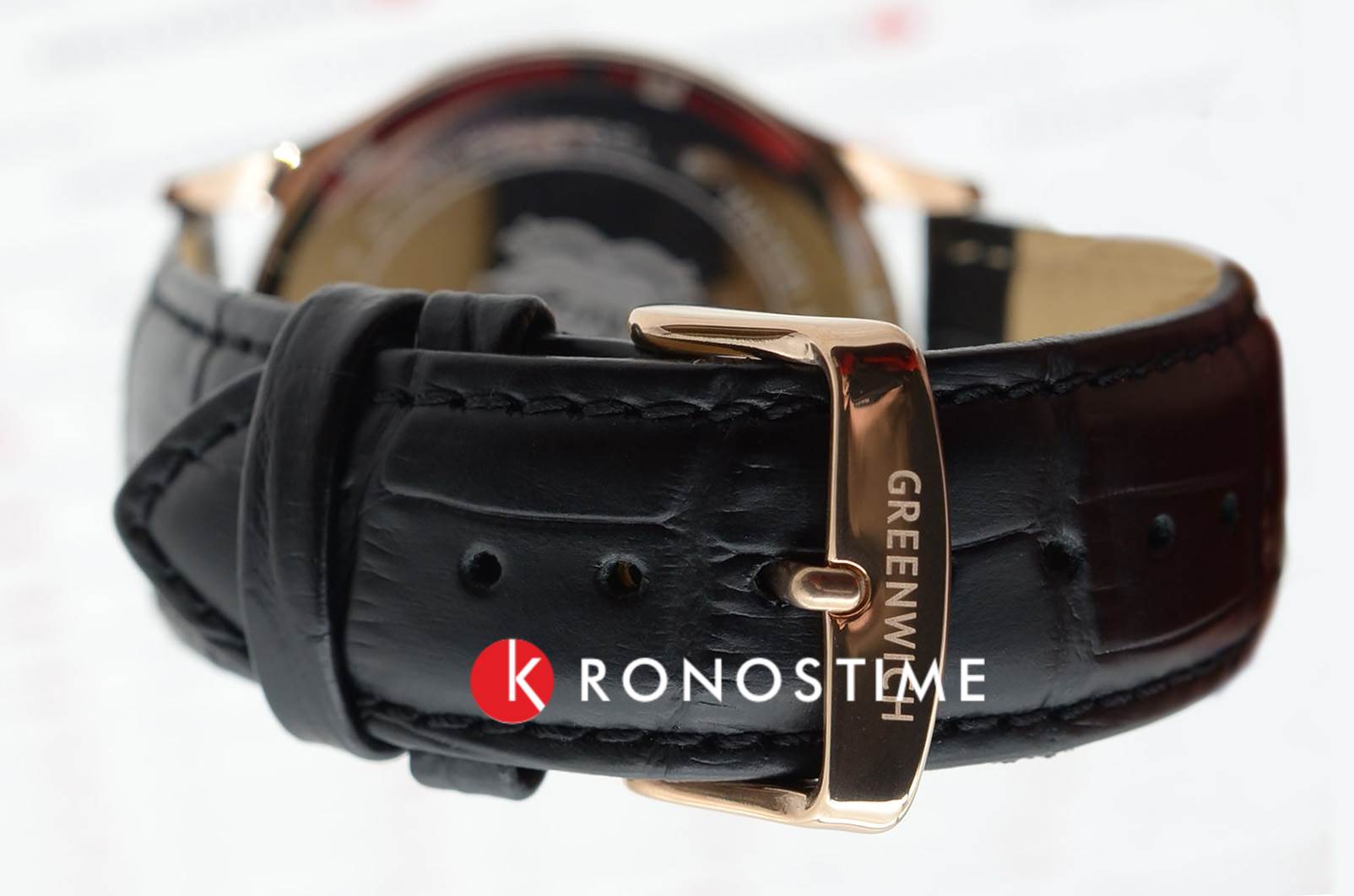 Мужские английские часы c хронографомХронографФункция позволяет измерять отрезки времени с особой точностью: часы, минуты, секунды. Верным признаком хронографа является наличие на циферблате 3 дополнительных окошек-счётчиков. Greenwich Navigator GW 053.41.31, кварцевый механизм с высокой точностью. Класс водозащиты: 100 метров, позволит плавать, нырять и заниматься другими водными видами спорта. Корпус часов изготовлен из стали с PVD-покрытиемPVDУльтратонкое покрытие наносится в технике вакуумного напыления, сочетает в себе нитрид титана особой прочности со слоем золота или оксида хрома. Несёт в себе декоративную или защитную функцию.. Минеральное стеклоМинеральное стеклоМинеральное стекло представляет собой искусственно выращенный минерал кварца. Такое стекло отличается особой устойчивостью к повреждениям и царапинам. Уступает по некоторым качествам сапфировому стеклу. устойчивое к мелким механическим повреждениям. Стрелки и метки с люминесцентным покрытиемЛюминесцентное покрытиеПозволяет считывать показания времени в темноте. Производители наносят на стрелки, часовые индексы, безель или поверхность циферблата светонакопительный состав, дающий холодное свечение.. Кожаный ремешок на стандартной застёжке. СекундомерСекундомерСекундоме́р — прибор, способный измерять интервалы времени с точностью до долей секунды.. Окошко даты находится в положении между 4 и 5 часов.
