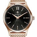 Мужские английские часы Greenwich GW 061.49.11 с минеральным стекломМинеральное стеклоМинеральное стекло представляет собой искусственно выращенный минерал кварца. Такое стекло отличается особой устойчивостью к повреждениям и царапинам. Уступает по некоторым качествам сапфировому стеклу.. Классические мужские часы серии Brig прекрасно подойдут как под костюм, так и под одежду направления casual. В часах установлен точный японский механизм Miyota. Корпус часов изготовлен из нержавеющей гипоаллергенной стали с PVDPVDУльтратонкое покрытие наносится в технике вакуумного напыления, сочетает в себе нитрид титана особой прочности со слоем золота или оксида хрома. Несёт в себе декоративную или защитную функцию. покрытием из розового золота: он изящно смотрится на руке и не создает неудобств при контакте с одеждой с длинным рукавом. Размер корпуса 41 мм. Полировка на циферблате черного цвета выполнена в виде солнечных лучей. Индексы часов изготовлены вручную и закреплены на двух штифтах. Выпуклая форма рисок создает эффект игры солнечных бликов. Объемные часовая и минутная стрелки имеют мечеобразную форму. В модели представлена дополнительная функция – дата. Ее окошко расположено на уровне трех часов. Циферблат надежно защищен минеральным стеклом. На часах установлен стальной браслет миланского плетения. Логотип марки – изображение «розы ветров», символа удачи и новых открытий – расположен на циферблате, заводной головке и внутренней части ремешка. Задняя крышка часов украшена изображениями логотипа и корабля, который является символом марки Greenwich.