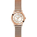 Женские наручные часы с минеральным стекломМинеральное стеклоМинеральное стекло представляет собой искусственно выращенный минерал кварца. Такое стекло отличается особой устойчивостью к повреждениям и царапинам. Уступает по некоторым качествам сапфировому стеклу. Guess Lady Melody GW0666L3 , кварцевый механизм с высокой точностью. Класс водозащиты: 30 метров, позволит защитить корпус от случайных брызг или капель дождя. Корпус часов изготовлен из стали с IP-покрытиемIP-покрытиеМетод ионного напыления. Демонстрирует повышенную устойчивость к истиранию, окислению и химическим веществам. Под воздействием высокого давления и температуры около 1500°C молекулы металла надёжно соединяются с частицами корпуса часов.. Стальной браслет на раскладной застёжкеРаскладная застёжкаТакой тип застёжки используется только на браслетах из металла. Она никогда не раскрывается полностью, происходит разделение на 2 и более частей. Раскладывающая застёжка снизит вероятность потери часов к минимуму. с IP-покрытиемIP-покрытиеМетод ионного напыления. Демонстрирует повышенную устойчивость к истиранию, окислению и химическим веществам. Под воздействием высокого давления и температуры около 1500°C молекулы металла надёжно соединяются с частицами корпуса часов..
