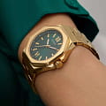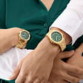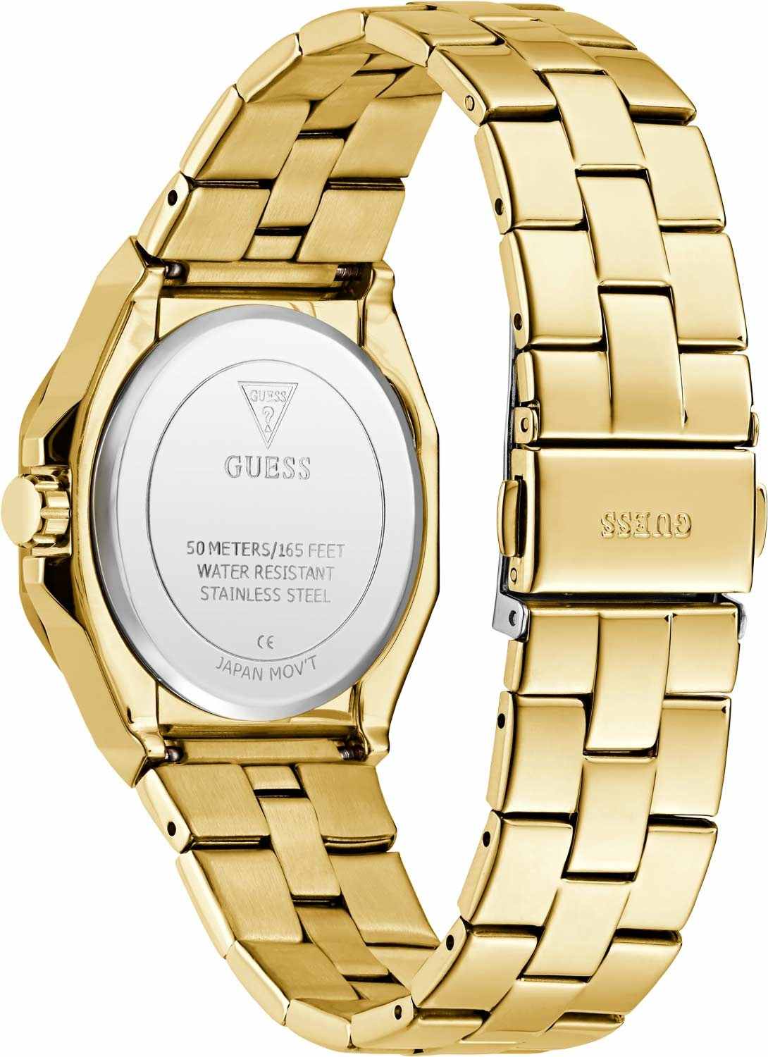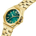 Часы Guess GW0873L2 — это изысканный аксессуар, который станет отличным дополнением к образу современной женщины. Эти наручные оснащены надежным кварцевым механизмом. Стальной корпус с золотистым IP-покрытиемIP-покрытиеМетод ионного напыления. Демонстрирует повышенную устойчивость к истиранию, окислению и химическим веществам. Под воздействием высокого давления и температуры около 1500°C молекулы металла надёжно соединяются с частицами корпуса часов. придаёт часам элегантный и стильный вид. Зеленый циферблат, выполненный по технологии Sunray, создает эффект солнечных лучей, добавляя глубину и выразительность дизайну. Метки в виде штрихов и римские цифры VI и XII обеспечивают удобное считывание времени и добавляют классический штрих. Люминесцентное покрытиеЛюминесцентное покрытиеПозволяет считывать показания времени в темноте. Производители наносят на стрелки, часовые индексы, безель или поверхность циферблата светонакопительный состав, дающий холодное свечение. на стрелках обеспечивает отличную видимость в темноте. Часы оснащены рифленой заводной головкой с защитой, что обеспечивает удобство и надежность в использовании. Стальной браслет с золотистым IP-покрытиемIP-покрытиеМетод ионного напыления. Демонстрирует повышенную устойчивость к истиранию, окислению и химическим веществам. Под воздействием высокого давления и температуры около 1500°C молекулы металла надёжно соединяются с частицами корпуса часов. и раскладной застежкойРаскладная застёжкаТакой тип застёжки используется только на браслетах из металла. Она никогда не раскрывается полностью, происходит разделение на 2 и более частей. Раскладывающая застёжка снизит вероятность потери часов к минимуму. гарантирует комфортное ношение и надежную фиксацию на запястье. Водозащита 50WR позволяет не беспокоиться о случайных брызгах и контакте с водой. Минеральное стеклоМинеральное стеклоМинеральное стекло представляет собой искусственно выращенный минерал кварца. Такое стекло отличается особой устойчивостью к повреждениям и царапинам. Уступает по некоторым качествам сапфировому стеклу. защищает циферблат от царапин и повреждений, обеспечивая долговечность и сохранность внешнего вида.