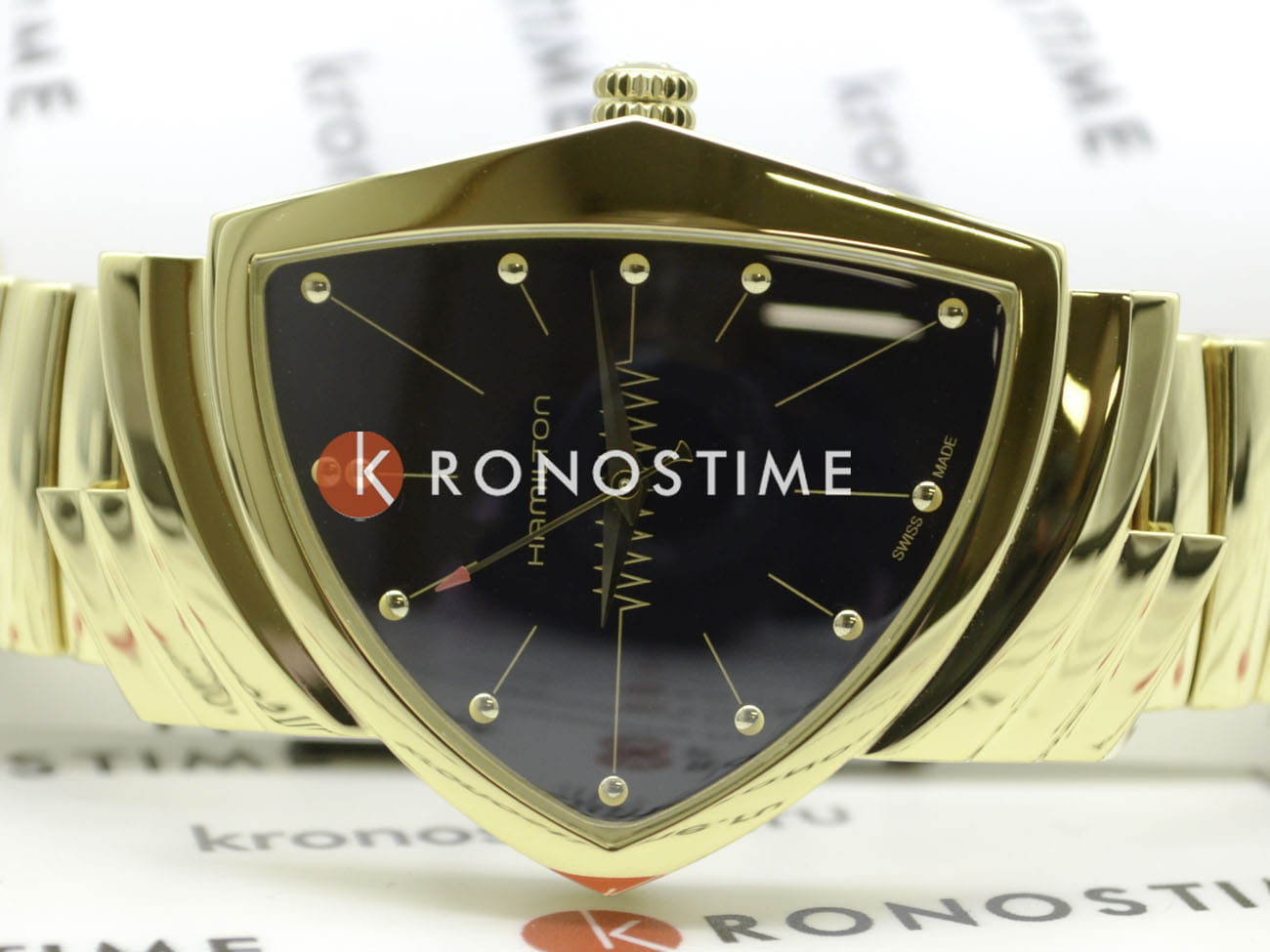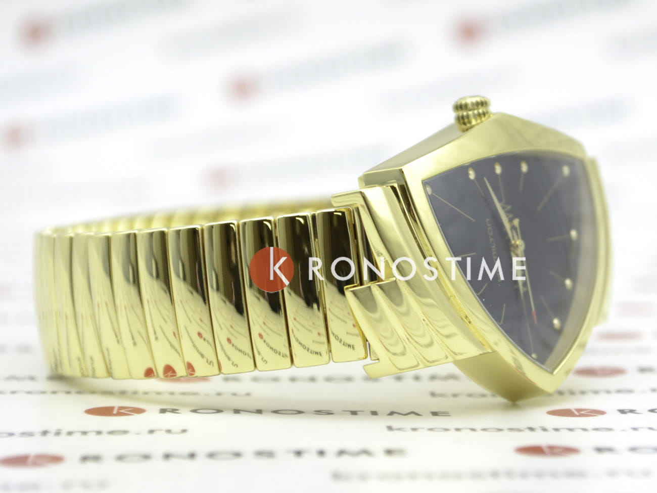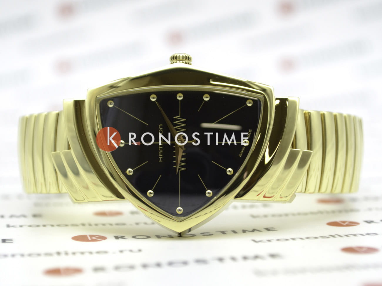Часы Hamilton Ventura Quart H24301131, кварцевый механизм F05.111 с высокой точностью. Корпус часов изготовлен из нержавеющей стали с PVD-покрытием желтого цвета. Стекло циферблата минеральное. Водостойкость - 50 м. Браслет из нержавеющей стали с раскладывающейся застежкой.
