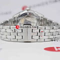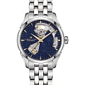 Hamilton Jazzmaster Open Heart Lady Auto H32215142 — женственные и элегантные часы с выразительным циферблатом и открытым механизмом. Корпус диаметром 36 мм выполнен из нержавеющей стали с чередованием полированной и сатинированной отделки, придающей часам изысканный и современный вид. Циферблат глубокого синего цвета с эффектом авантюрина оформлен изящными вырезами, открывающими часть механизма — так называемое "открытое сердце". Часовые метки и стрелки покрыты люминесцентным покрытиемЛюминесцентное покрытиеПозволяет считывать показания времени в темноте. Производители наносят на стрелки, часовые индексы, безель или поверхность циферблата светонакопительный состав, дающий холодное свечение., обеспечивающим отличную читаемость. Циферблат защищён сапфировым стекломСапфировое стеклоПрочный и надёжный материал из кристалла сапфира синтетического происхождения, характеризующийся особой твёрдостью и устойчивостью к царапинам и повреждениям. с антибликовым покрытиемАнтибликовое покрытиеСлой оксида металла в 0,13-0,3 микрон, благодаря которому стекло часов не бликует и не отражает свет. Антибликовое покрытие уменьшает отражение света в 10 раз, обеспечивая отличную читаемость показателей циферблата.. Внутри установлен швейцарский автоматический механизм H-10 с увеличенным запасом хода до 80 часов. Пружина баланса изготовлена из сплава Nivachron™Nivachron™Специально разработанный инновационный сплав Nivachron™ повышает устойчивость часов к воздействию магнитных полей., который отличается устойчивостью к магнитным полям. Часы укомплектованы браслетом из нержавеющей стали, а застёжка 'бабочка'Застёжка "бабочка"Такой вид застёжки дополняется предохранителями, помогающими избежать случайного раскрытия браслета. Обладают изящным исполнением. обеспечивает надёжную и аккуратную посадку на запястье. Водонепроницаемость 50 метров делает модель надёжным спутником для повседневного ношения.