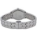 Швейцарские женские часы Hamilton Jazzmaster Lady Quartz H32281197 с надёжным кварцевым механизмом. Корпус часов изготовлен из нержавеющей стали. Стальной браслет на застёжке-бабочке с кнопкамиЗастёжка "бабочка"Такой вид застёжки дополняется предохранителями, помогающими избежать случайного раскрытия браслета. Обладают изящным исполнением. . Сапфировое стеклоСапфировое стеклоПрочный и надёжный материал из кристалла сапфира синтетического происхождения, характеризующийся особой твёрдостью и устойчивостью к царапинам и повреждениям. с антибликовым покрытием. Стрелки и метки с люминесцентным покрытиемЛюминесцентное покрытиеПозволяет считывать показания времени в темноте. Производители наносят на стрелки, часовые индексы, безель или поверхность циферблата светонакопительный состав, дающий холодное свечение.. БезельБезельВнешний ободок, закрепляющий стекло. В спортивных часах так называется поворотное кольцо с делениями на циферблате, выполняет роль таймера – замеряет отрезки времени на шкале. Неподвижный безель – элемент декора. Однонаправленно вращающийся безель на дайверских часах позволяет фиксировать моменты погружения и выныривания на поверхность. инкрустирован бриллиантами.