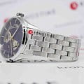 Hamilton Jazzmaster Open Heart Auto H32705140 – элегантные мужские часы, сочетающие классический дизайн и современные технологии. Корпус диаметром 42 мм выполнен из нержавеющей стали, обеспечивая прочность и долговечность. Градиентный циферблат с вырезами, открывающими механизм, придаёт модели уникальный характер и стиль, а его поверхность защищена сапфировым стекломСапфировое стеклоПрочный и надёжный материал из кристалла сапфира синтетического происхождения, характеризующийся особой твёрдостью и устойчивостью к царапинам и повреждениям., устойчивым к царапинам. Часы оснащены автоматическим калибром H-10 с технологией Powermatic 80Powermatic 80Эксклюзивный калибр от швейцарской компании ETA с увеличенным запасом хода до 80 часов за счёт удлинённой заводной пружины. Характеризуется улучшенной системой спуска со сниженным трением., обеспечивающей запас хода до 80 часов и стабильную точность. Прозрачная задняя крышка позволяет наблюдать за работой механизма, добавляя эстетическую привлекательность. Стальной браслет на застёжке-бабочке с кнопкамиЗастёжка "бабочка"Такой вид застёжки дополняется предохранителями, помогающими избежать случайного раскрытия браслета. Обладают изящным исполнением. обеспечивает комфортное ношение и надёжную фиксацию на запястье. Водозащита до 50 метров (5 бар) делает часы подходящими для повседневного использования и защищает их от случайных брызг и дождя.