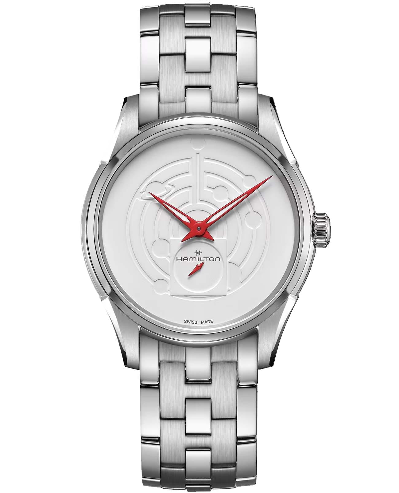Откройте для себя новые космические горизонты: источником вдохновения для создания модели Jazzmaster Thinline Special Edition послужил фильм «Блуждающая Земля 2» – продолжение китайской научно-фантастической картины режиссера Франта Гво, основанной на романе Лю Цысиня 2000 года. Часы этой специальной серии, заключенные в обтекаемый корпус диаметром 40 мм, имеют черный циферблат с контрастными красными часовой, минутной и малой секундной стрелками. Циферблат привлекает внимание планетарным дизайном – аллюзия на тему исследования космоса, освещенную в фильме. Прочное сапфировое стеклоСапфировое стеклоПрочный и надёжный материал из кристалла сапфира синтетического происхождения, характеризующийся особой твёрдостью и устойчивостью к царапинам и повреждениям.. Браслет из нержавеющей стали с застёжкой «бабочка» с кнопкамиЗастёжка "бабочка"Такой вид застёжки дополняется предохранителями, помогающими избежать случайного раскрытия браслета. Обладают изящным исполнением. . Стрелки с люминесцентным покрытиемЛюминесцентное покрытиеПозволяет считывать показания времени в темноте. Производители наносят на стрелки, часовые индексы, безель или поверхность циферблата светонакопительный состав, дающий холодное свечение..
