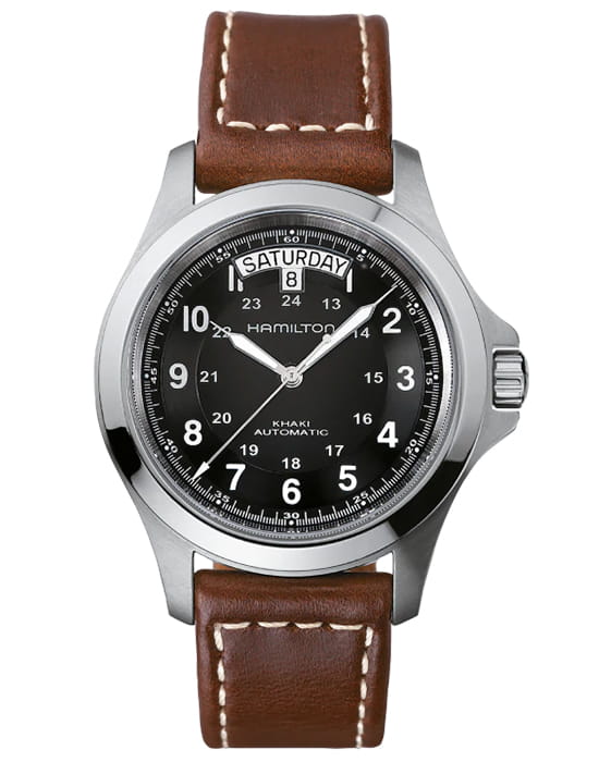 Военное наследие Hamilton в полной мере отразилось на циферблате часов Khaki Field King Auto. Специально разработанные элементы боковой защиты надежно охраняют заводную головку. Да здравствует Король. Представлены в сезоне 8 сериала «Доктор Хаус» (2012) на Хью Лори в роли Доктора Грегори Хауса.