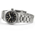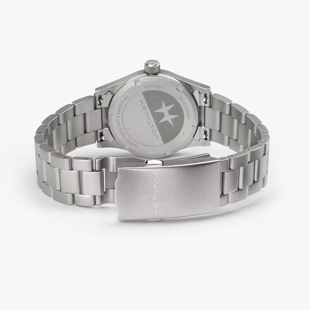 Hamilton Khaki Field Quartz H69301131 — компактные и универсальные часы в классическом военном стиле, с акцентом на надёжность и практичность. Корпус диаметром 33 мм выполнен из нержавеющей стали с сатинированной поверхностью. Он лёгкий, удобный и идеально подходит для запястий любого размера. Циферблат защищён сапфировым стекломСапфировое стеклоПрочный и надёжный материал из кристалла сапфира синтетического происхождения, характеризующийся особой твёрдостью и устойчивостью к царапинам и повреждениям. с антибликовым покрытиемАнтибликовое покрытиеСлой оксида металла в 0,13-0,3 микрон, благодаря которому стекло часов не бликует и не отражает свет. Антибликовое покрытие уменьшает отражение света в 10 раз, обеспечивая отличную читаемость показателей циферблата., устойчивым к царапинам и бликам. Циферблат оформлен в классическом армейском стиле: крупные арабские цифры, 24-часовая шкала по внутреннему кругу, стрелки и метки с люминесцентным покрытиемЛюминесцентное покрытиеПозволяет считывать показания времени в темноте. Производители наносят на стрелки, часовые индексы, безель или поверхность циферблата светонакопительный состав, дающий холодное свечение. для удобного считывания в темноте. Внутри установлен швейцарский кварцевый калибр ETA F05.105mh2 с функцией EOL-индикацииEOLПредставляет собой систему, уведомляющую владельца часов о необходимости замены элемента питания. За 2 недели до полного разряда батарейки секундная стрелка перестаёт ходить чётко и начинает перепрыгивать на 3-4 деления. — предупреждением о скором разряде батареи. Модель укомплектована браслетом из нержавеющей стали с раскладной застёжкойРаскладная застёжкаТакой тип застёжки используется только на браслетах из металла. Она никогда не раскрывается полностью, происходит разделение на 2 и более частей. Раскладывающая застёжка снизит вероятность потери часов к минимуму., обеспечивающей надёжную посадку. Водонепроницаемость 50 метров делает часы устойчивыми к брызгам и дождю, идеально подходящими для повседневного ношения. Khaki Field Quartz 33 мм — надёжный выбор для тех, кто ценит простоту, точность и долговечность.