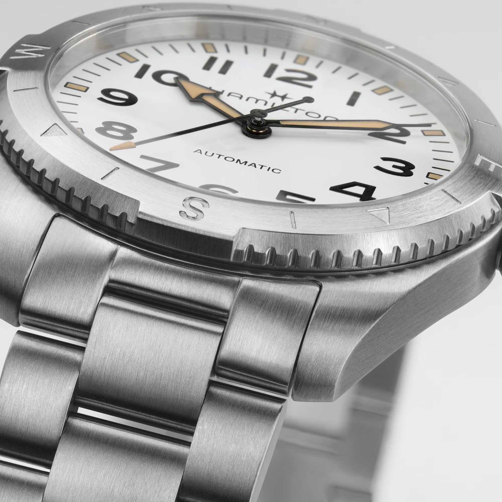 Мужские наручные часы Hamilton Khaki Field Expedition Auto H70315110 с автоматическим механизмом. Корпус часов изготовлен из нержавеющей стали. Стальной браслет на раскладной застёжкеРаскладная застёжкаТакой тип застёжки используется только на браслетах из металла. Она никогда не раскрывается полностью, происходит разделение на 2 и более частей. Раскладывающая застёжка снизит вероятность потери часов к минимуму.. Сапфировое стеклоСапфировое стеклоПрочный и надёжный материал из кристалла сапфира синтетического происхождения, характеризующийся особой твёрдостью и устойчивостью к царапинам и повреждениям. с антибликовым покрытием. Стрелки и метки с люминесцентным покрытиемЛюминесцентное покрытиеПозволяет считывать показания времени в темноте. Производители наносят на стрелки, часовые индексы, безель или поверхность циферблата светонакопительный состав, дающий холодное свечение.. Уровень влагозащиты: 100 метров, позволит плавать, нырять и заниматься другими водными видами спорта. Дизайн невероятно прочных часов Khaki Field Expedition завершает белый циферблат с пескоструйной обработкой, обеспечивающий идеальную считываемость показаний.