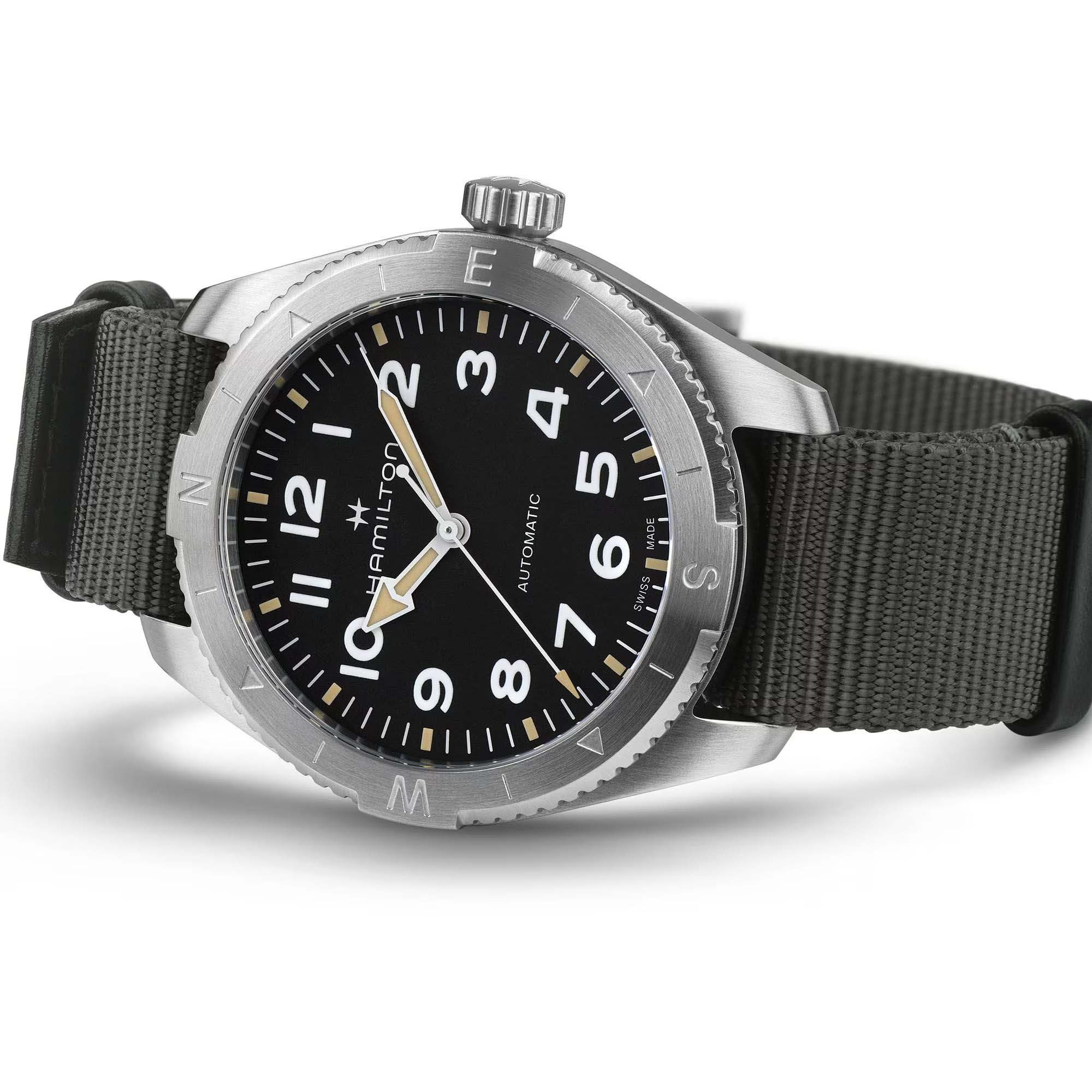Мужские наручные часы Hamilton Khaki Field Expedition Auto H70315930 с автоматическим механизмом. Корпус часов изготовлен из нержавеющей стали. Сапфировое стеклоСапфировое стеклоПрочный и надёжный материал из кристалла сапфира синтетического происхождения, характеризующийся особой твёрдостью и устойчивостью к царапинам и повреждениям. с антибликовым покрытием. Стрелки и метки с люминесцентным покрытиемЛюминесцентное покрытиеПозволяет считывать показания времени в темноте. Производители наносят на стрелки, часовые индексы, безель или поверхность циферблата светонакопительный состав, дающий холодное свечение.. Уровень влагозащиты: 100 метров, позволит плавать, нырять и заниматься другими водными видами спорта. Невероятно прочные часы дополнены завинчивающейся заводной головкой и черным циферблатом с пескоструйной обработкой. Текстильный ремешок NATOРемешок NATOРемешок NATO — это прочный, универсальный и сменный часовой ремешок, изначально созданный для военных. Он изготовлен из нейлона или другого прочного материала и имеет уникальную конструкцию, которая позволяет часам оставаться на запястье даже в случае поломки одной из прикрепляющих точек. .