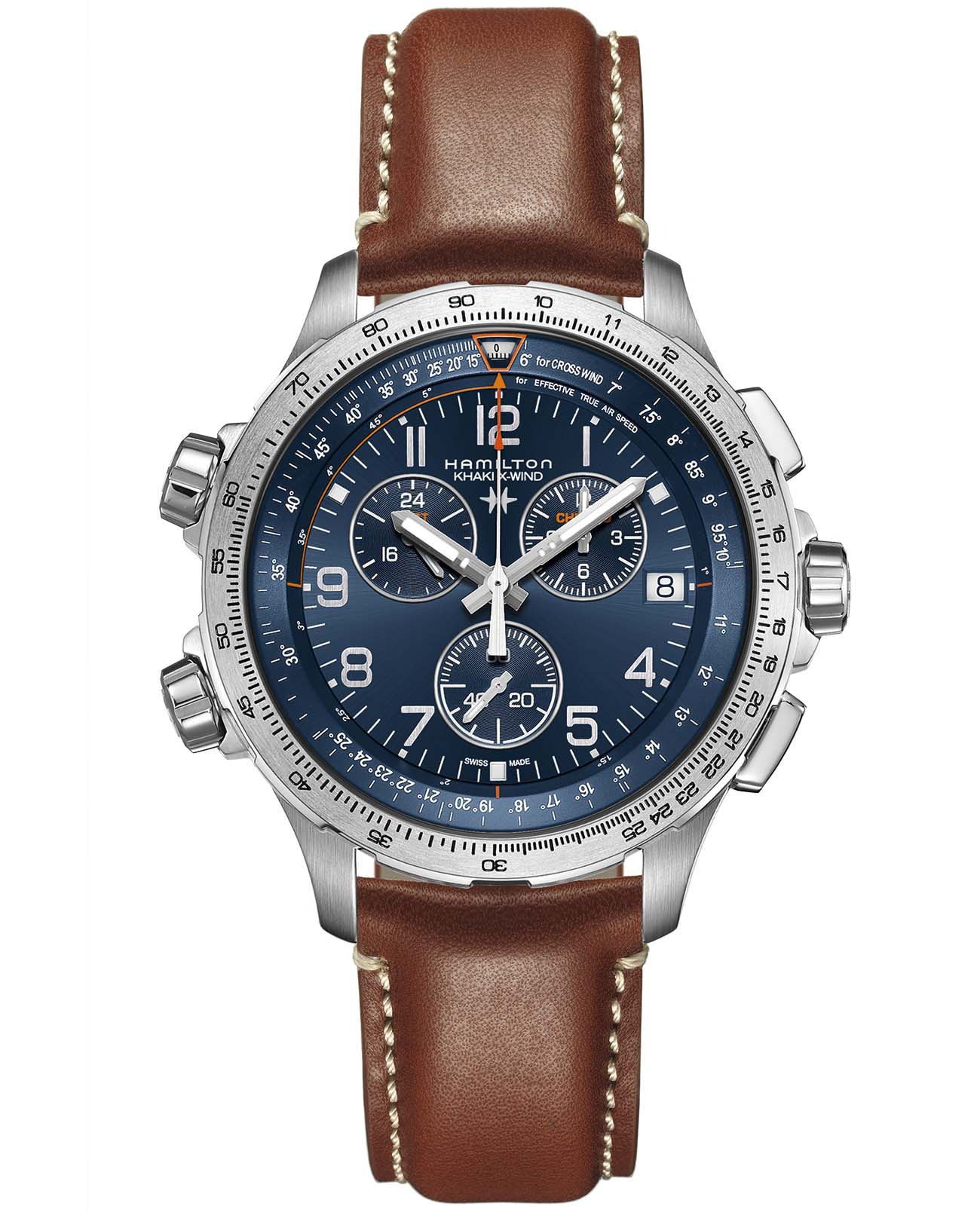 Мужские швейцарские часы Hamilton Khaki X-Wind GMT Chrono Quartz H77922541, кварцевый механизм с высокой точностью. Сапфировое стеклоСапфировое стеклоПрочный и надёжный материал из кристалла сапфира синтетического происхождения, характеризующийся особой твёрдостью и устойчивостью к царапинам и повреждениям. устойчивое к появлению царапин, обладающее высокой прозрачностью. Класс водозащиты: 100 метров, позволит плавать, нырять и заниматься другими водными видами спорта. Корпус часов изготовлен из стали. Стрелки с люминесцентным покрытиемЛюминесцентное покрытиеПозволяет считывать показания времени в темноте. Производители наносят на стрелки, часовые индексы, безель или поверхность циферблата светонакопительный состав, дающий холодное свечение.. Кожаный ремешок.