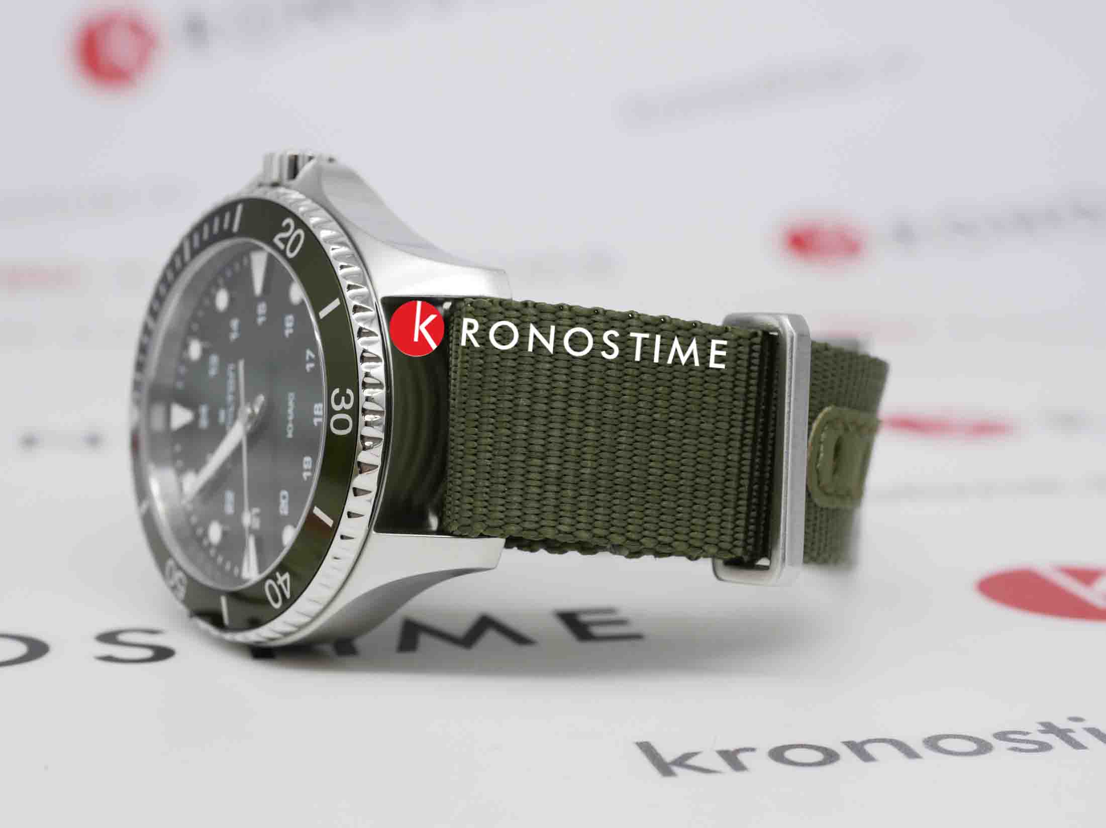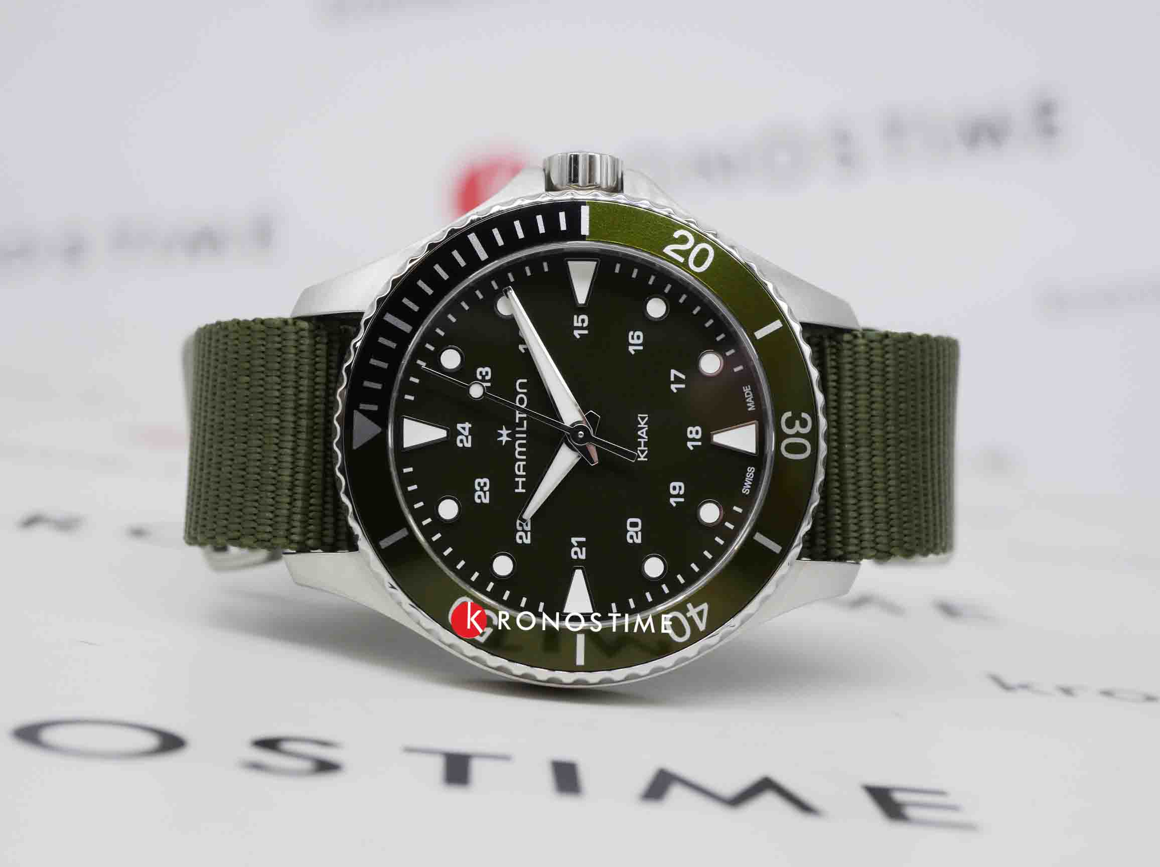Мужские наручные часы Hamilton Khaki Navy Scuba Quartz H82241961 с надёжным кварцевым механизмом. Корпус часов изготовлен из нержавеющей стали. Сапфировое стеклоСапфировое стеклоПрочный и надёжный материал из кристалла сапфира синтетического происхождения, характеризующийся особой твёрдостью и устойчивостью к царапинам и повреждениям. с антибликовым покрытием. Практичный тканевый ремешок на стандартной застёжке. Стрелки и метки с люминесцентным покрытиемЛюминесцентное покрытиеПозволяет считывать показания времени в темноте. Производители наносят на стрелки, часовые индексы, безель или поверхность циферблата светонакопительный состав, дающий холодное свечение.. Уровень влагозащиты: 100 метров, позволит плавать, нырять и заниматься другими водными видами спорта. Вращающийся безельБезельВнешний ободок, закрепляющий стекло. В спортивных часах так называется поворотное кольцо с делениями на циферблате, выполняет роль таймера – замеряет отрезки времени на шкале. Неподвижный безель – элемент декора. Однонаправленно вращающийся безель на дайверских часах позволяет фиксировать моменты погружения и выныривания на поверхность. с PVD-покрытиемPVDУльтратонкое покрытие наносится в технике вакуумного напыления, сочетает в себе нитрид титана особой прочности со слоем золота или оксида хрома. Несёт в себе декоративную или защитную функцию..