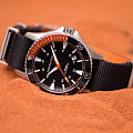 Мужские часы Hamilton Khaki Navy Scuba Auto H82305931 с автоматическим механизмом. Корпус часов выполнен из нержавеющей стали. БезельБезельВнешний ободок, закрепляющий стекло. В спортивных часах так называется поворотное кольцо с делениями на циферблате, выполняет роль таймера – замеряет отрезки времени на шкале. Неподвижный безель – элемент декора. Однонаправленно вращающийся безель на дайверских часах позволяет фиксировать моменты погружения и выныривания на поверхность. с PVD-покрытиемPVDУльтратонкое покрытие наносится в технике вакуумного напыления, сочетает в себе нитрид титана особой прочности со слоем золота или оксида хрома. Несёт в себе декоративную или защитную функцию.. Тканевый ремешок на стандартной застёжке. Стрелки и метки с люминесцентным покрытиемЛюминесцентное покрытиеПозволяет считывать показания времени в темноте. Производители наносят на стрелки, часовые индексы, безель или поверхность циферблата светонакопительный состав, дающий холодное свечение.. Окошко даты находится в положении между 4 и 5 часов. Сапфировое стеклоСапфировое стеклоПрочный и надёжный материал из кристалла сапфира синтетического происхождения, характеризующийся особой твёрдостью и устойчивостью к царапинам и повреждениям. с антибликовым покрытием. Уровень влагозащиты: 100 метров, позволит плавать, нырять и заниматься другими водными видами спорта.