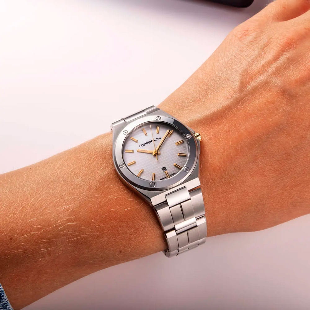 Женские кварцевые часы Herbelin Cap Camarat 14545B19T – отражающий идеальное сочетание современного дизайна, надёжности и функциональности. Элегантный облик станет превосходным завершением образа, наделив его индивидуальным характером. Корпус из нержавеющей стали серебристого цвета, диаметром 33 мм и толщиной 7.1 мм, идеально сбалансирован и элегантен. Сапфировое стеклоСапфировое стеклоПрочный и надёжный материал из кристалла сапфира синтетического происхождения, характеризующийся особой твёрдостью и устойчивостью к царапинам и повреждениям. защищает циферблат от царапин и устойчивое к механическим повреждениям. БезельБезельВнешний ободок, закрепляющий стекло. В спортивных часах так называется поворотное кольцо с делениями на циферблате, выполняет роль таймера – замеряет отрезки времени на шкале. Неподвижный безель – элемент декора. Однонаправленно вращающийся безель на дайверских часах позволяет фиксировать моменты погружения и выныривания на поверхность. украшен винтами, заводная головка с защитой. Окошко даты находится в положении 6 часов. Стрелки и метки с люминесцентным покрытиемЛюминесцентное покрытиеПозволяет считывать показания времени в темноте. Производители наносят на стрелки, часовые индексы, безель или поверхность циферблата светонакопительный состав, дающий холодное свечение.. Стальной браслет на застёжке-бабочке с кнопкамиЗастёжка "бабочка"Такой вид застёжки дополняется предохранителями, помогающими избежать случайного раскрытия браслета. Обладают изящным исполнением. обеспечивает комфортное ношение. Водозащита 100 метров позволит плавать, нырять и заниматься другими водными видами спорта. Эта модель – отличный выбор для тех, кто ищет сочетание стиля, качества и функциональности. Часы станут не только полезным аксессуаром, но и выразительным элементом вашего имиджа.