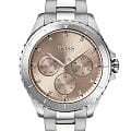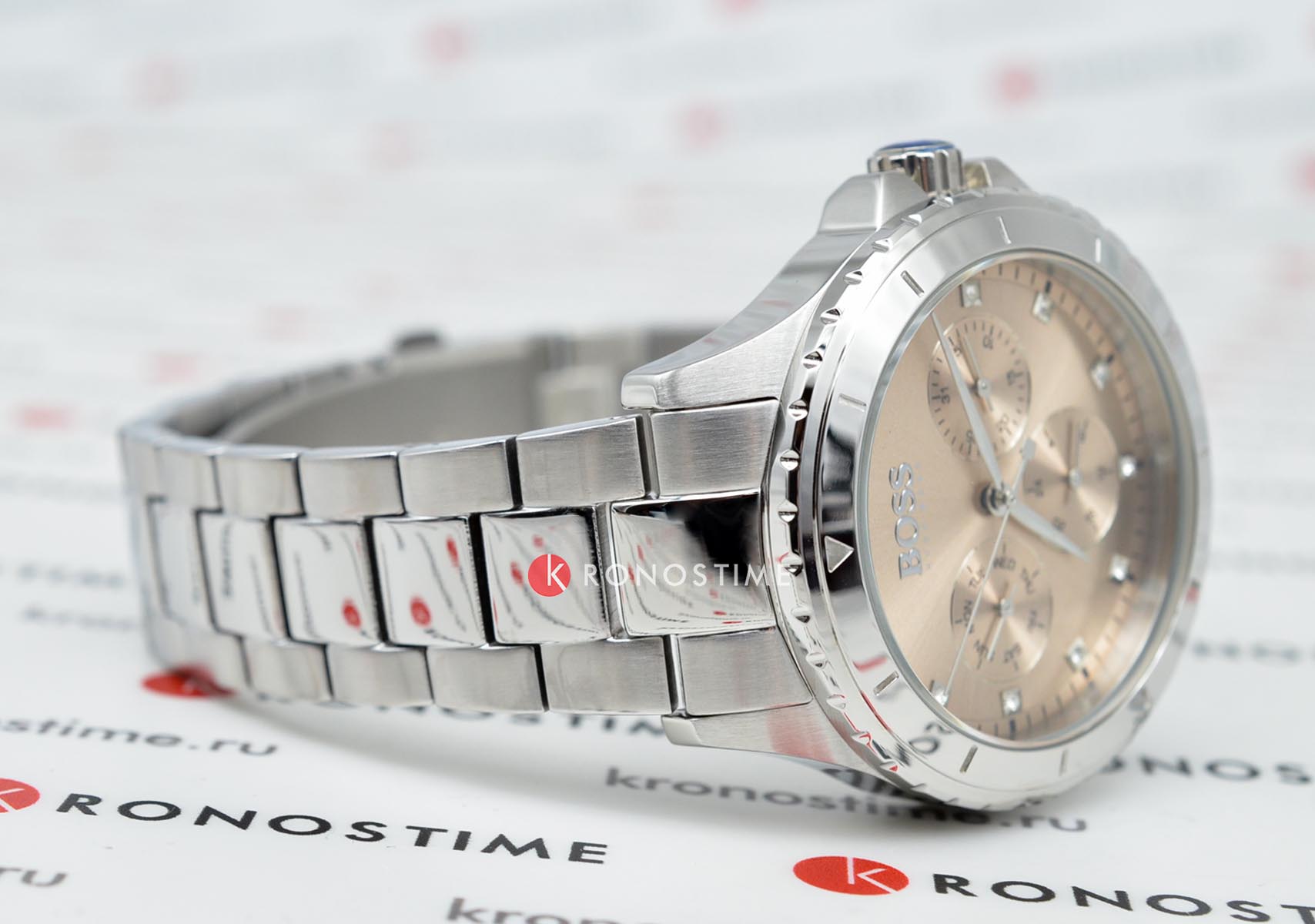 Элегантные женские часы Hugo Boss Premiere HB1502444 из коллекции представлены в стальном корпусе диаметром 38 мм с эффектным розовым циферблатом, защищённым прочным минеральным стекломМинеральное стеклоМинеральное стекло представляет собой искусственно выращенный минерал кварца. Такое стекло отличается особой устойчивостью к повреждениям и царапинам. Уступает по некоторым качествам сапфировому стеклу.. Модель оснащена швейцарским кварцевым механизмом с полезными функциями: день недели, дата, второй часовой поясВторой часовой поясФункция, позволяющая отображать время двух часовых поясов одновременно. в 24-часовом формате. Спортивный характер подчёркивает поворотный безельБезельВнешний ободок, закрепляющий стекло. В спортивных часах так называется поворотное кольцо с делениями на циферблате, выполняет роль таймера – замеряет отрезки времени на шкале. Неподвижный безель – элемент декора. Однонаправленно вращающийся безель на дайверских часах позволяет фиксировать моменты погружения и выныривания на поверхность. из стали, а стальной браслет с раскладной застежкойРаскладная застёжкаТакой тип застёжки используется только на браслетах из металла. Она никогда не раскрывается полностью, происходит разделение на 2 и более частей. Раскладывающая застёжка снизит вероятность потери часов к минимуму. гарантирует комфортное ношение и надежную фиксацию.Эта элегантная модель с 12 кристаллами Swarovski с водонепроницаемостью 50 метров делает часы устойчивыми к повседневным нагрузкам. Эти часы сочетают в себе превосходное качество и изысканность. Они станут отличным выбором для тех, кто ценит стильный дизайн и функциональность в одном аксессуаре, подходят для ежедневного использования.