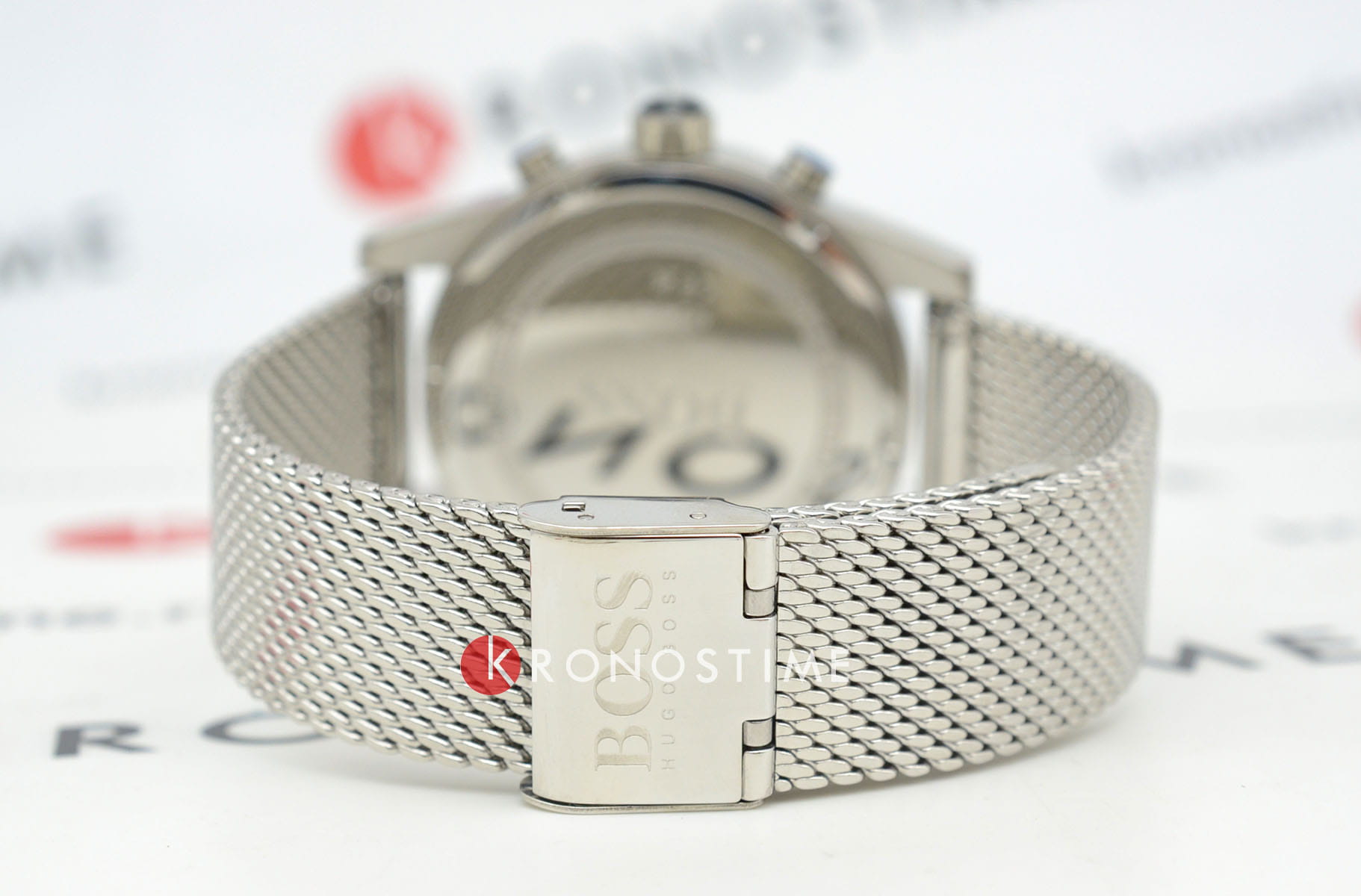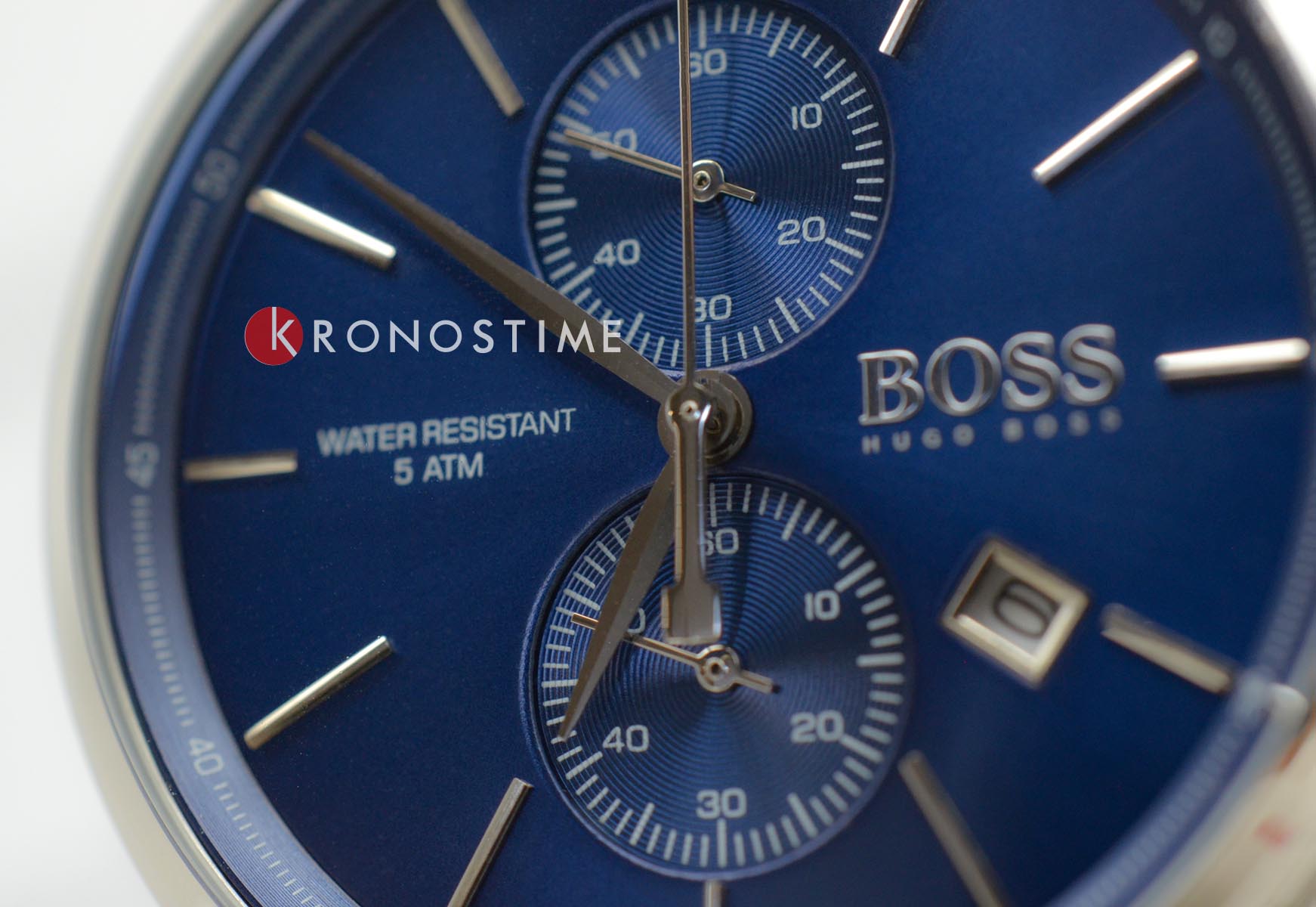 Мужские кварцевые часы Hugo Boss Jet HB1513441 представлены в 40-мм корпусе из нержавеющей стали серебристого цвета. Модель оснащена кварцевым механизмом с функцией хронографаХронографФункция позволяет измерять отрезки времени с особой точностью: часы, минуты, секунды. Верным признаком хронографа является наличие на циферблате 3 дополнительных окошек-счётчиков. и секундомеромСекундомерСекундоме́р — прибор, способный измерять интервалы времени с точностью до долей секунды., а также окошком даты на позиции 3 часа. Синий циферблат со штриховыми метками защищен устойчивым к царапинам минеральным стекломМинеральное стеклоМинеральное стекло представляет собой искусственно выращенный минерал кварца. Такое стекло отличается особой устойчивостью к повреждениям и царапинам. Уступает по некоторым качествам сапфировому стеклу.. Стальной браслет выполнен в технике "миланское плетение" и дополнен раскладной застёжкойРаскладная застёжкаТакой тип застёжки используется только на браслетах из металла. Она никогда не раскрывается полностью, происходит разделение на 2 и более частей. Раскладывающая застёжка снизит вероятность потери часов к минимуму.. Часы обладают водонепроницаемостью WR50 (5 ATM), что обеспечивает защиту от брызг воды и дождя.