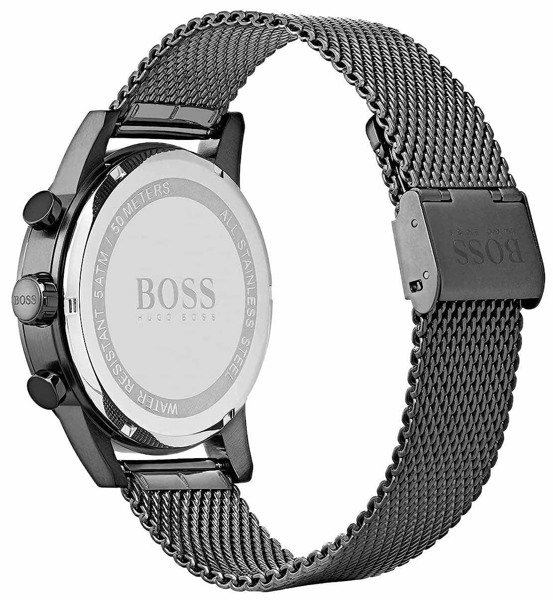 Мужские кварцевые часы Hugo Boss HB1513674 — это стильный аксессуар, сочетающий в себе элегантность и функциональность. Модель выполнена в круглой форме из стали с IP-покрытиемIP-покрытиеМетод ионного напыления. Демонстрирует повышенную устойчивость к истиранию, окислению и химическим веществам. Под воздействием высокого давления и температуры около 1500°C молекулы металла надёжно соединяются с частицами корпуса часов., что придаёт ей устойчивость к царапинам и благородный внешний вид. Циферблат чёрного цвета дополнен арабскими цифрами и окошком даты, расположенным между отметками 4 и 5 часов. Защиту механизма обеспечивает минеральное стеклоМинеральное стеклоМинеральное стекло представляет собой искусственно выращенный минерал кварца. Такое стекло отличается особой устойчивостью к повреждениям и царапинам. Уступает по некоторым качествам сапфировому стеклу., устойчивое к повреждениям. Рифлёная заводная головка обеспечивает удобство в использовании. Стальной браслет миланского плетения с покрытием шириной 22 мм оснащён Раскладная застёжкаРаскладная застёжкаТакой тип застёжки используется только на браслетах из металла. Она никогда не раскрывается полностью, происходит разделение на 2 и более частей. Раскладывающая застёжка снизит вероятность потери часов к минимуму., обеспечивающей комфорт и надёжную фиксацию на запястье. Часы водонепроницаемы до 50 метров (, что позволяет использовать их при мытье рук или под лёгким дождём. Время отображается в 12- и 24-часовом формате, что делает модель универсальной для использования в разных условиях. Эти часы станут универсальным аксессуаром для тех, кто ценит сочетание стиля, качества и надёжности — идеальный выбор для повседневной носки и деловых встреч.