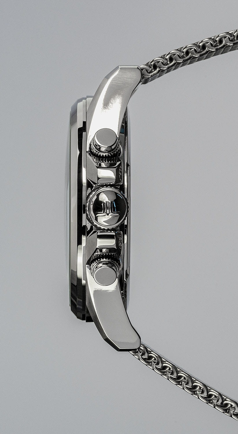 Мужские часы Jacques Lemans Liverpool 1-1117BS с минеральным стекломМинеральное стеклоМинеральное стекло представляет собой искусственно выращенный минерал кварца. Такое стекло отличается особой устойчивостью к повреждениям и царапинам. Уступает по некоторым качествам сапфировому стеклу., кварцевый механизм с высокой точностью. Часы- хронографХронографФункция позволяет измерять отрезки времени с особой точностью: часы, минуты, секунды. Верным признаком хронографа является наличие на циферблате 3 дополнительных окошек-счётчиков. с секундомеромСекундомерСекундоме́р — прибор, способный измерять интервалы времени с точностью до долей секунды. представляют собой стильный аксессуар, отражающий идеальное сочетание современного дизайна, надёжности и функциональности. Корпус и безельБезельВнешний ободок, закрепляющий стекло. В спортивных часах так называется поворотное кольцо с делениями на циферблате, выполняет роль таймера – замеряет отрезки времени на шкале. Неподвижный безель – элемент декора. Однонаправленно вращающийся безель на дайверских часах позволяет фиксировать моменты погружения и выныривания на поверхность. из нержавеющей стали. На циферблате расположены два дополнительных индикатора и окошко даты. Окно даты расположено между 4 и 5 часами. Стрелки и метки с люминесцентным покрытиемЛюминесцентное покрытиеПозволяет считывать показания времени в темноте. Производители наносят на стрелки, часовые индексы, безель или поверхность циферблата светонакопительный состав, дающий холодное свечение.. Класс водозащиты: 200 метров, позволит плавать, нырять и заниматься другими водными видами спорта. Миланский браслет из нержавеющей стали на раскладной застёжкойРаскладная застёжкаТакой тип застёжки используется только на браслетах из металла. Она никогда не раскрывается полностью, происходит разделение на 2 и более частей. Раскладывающая застёжка снизит вероятность потери часов к минимуму..