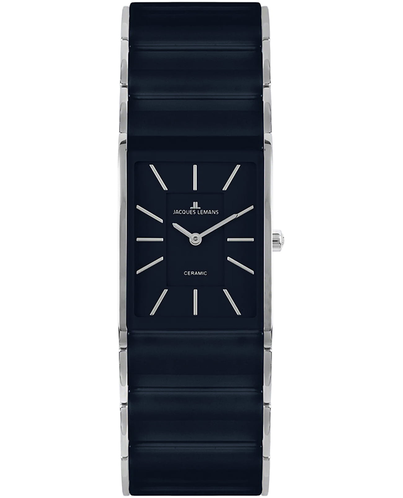 Женские наручные часы Jacques Lemans Dublin 1-1940Q кварцевый механизм с высокой точностью. Минеральное стеклоМинеральное стеклоМинеральное стекло представляет собой искусственно выращенный минерал кварца. Такое стекло отличается особой устойчивостью к повреждениям и царапинам. Уступает по некоторым качествам сапфировому стеклу. с сапфировым напылением устойчивое к мелким механическим повреждениям. Элегантный облик позволяют носить часы как со строгой рубашкой, так и с повседневными джинсами. Прямоугольный корпус из нержавеющей стали размером 24x28 мм идеально сбалансирован и элегантен. Класс водозащиты: 50 метров позволит защитить корпус от случайных брызг или капель дождя. Браслет из стали с керамическими вставками на застёжке-бабочке с кнопкамиЗастёжка "бабочка"Такой вид застёжки дополняется предохранителями, помогающими избежать случайного раскрытия браслета. Обладают изящным исполнением. обеспечивает комфортное ношение. Керамический безельБезельВнешний ободок, закрепляющий стекло. В спортивных часах так называется поворотное кольцо с делениями на циферблате, выполняет роль таймера – замеряет отрезки времени на шкале. Неподвижный безель – элемент декора. Однонаправленно вращающийся безель на дайверских часах позволяет фиксировать моменты погружения и выныривания на поверхность.. Продуманный дизайн рисок и стрелок позволяет с легкостью определять время. Это аксессуар для женщины, которая ценит классический стиль и функциональность.