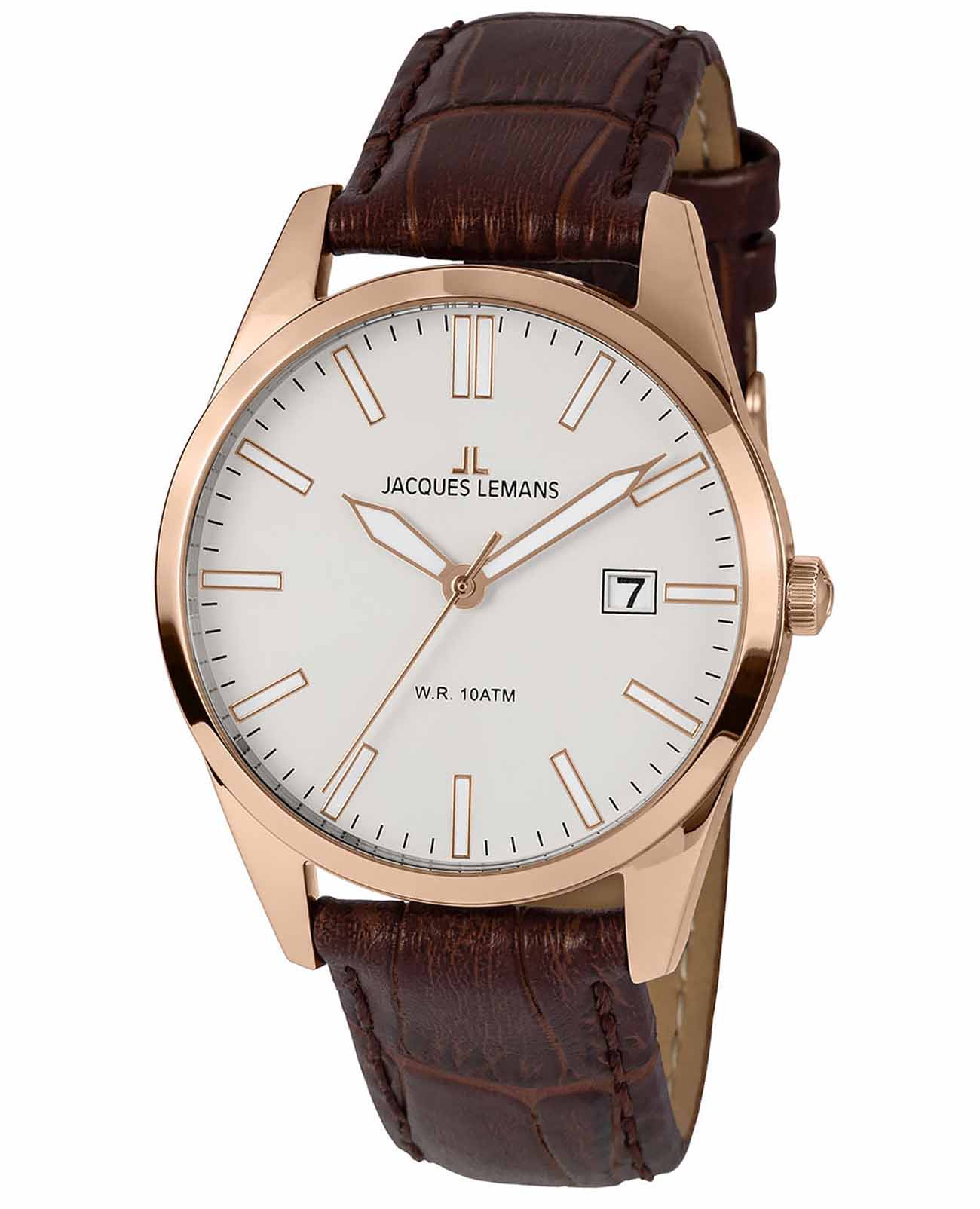 Наручные часы Jacques Lemans призваны ставить на первое место индивидуальный стиль владельца, классическая элегантность придётся по вкусу каждому. Кварцевый механизм с высокой точностью. Минеральное стеклоМинеральное стеклоМинеральное стекло представляет собой искусственно выращенный минерал кварца. Такое стекло отличается особой устойчивостью к повреждениям и царапинам. Уступает по некоторым качествам сапфировому стеклу. устойчивое к появлению царапин, обладающее высокой прозрачностью. Стрелки и метки с люминесцентным покрытиемЛюминесцентное покрытиеПозволяет считывать показания времени в темноте. Производители наносят на стрелки, часовые индексы, безель или поверхность циферблата светонакопительный состав, дающий холодное свечение.. Класс водозащиты: 100 метров, позволит плавать, нырять и заниматься другими водными видами спорта. Корпус часов изготовлен из нержавеющей стали IP-покрытиемIP-покрытиеМетод ионного напыления. Демонстрирует повышенную устойчивость к истиранию, окислению и химическим веществам. Под воздействием высокого давления и температуры около 1500°C молекулы металла надёжно соединяются с частицами корпуса часов.. Кожаный ремешок с классической застежкой.