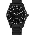 Часы с явными спортивными акцентами могут выглядеть элегантно. Крупный корпус диаметром 42 мм сделан из нержавеющей стали с PVD-покрытиемPVDУльтратонкое покрытие наносится в технике вакуумного напыления, сочетает в себе нитрид титана особой прочности со слоем золота или оксида хрома. Несёт в себе декоративную или защитную функцию., на широкий безельБезельВнешний ободок, закрепляющий стекло. В спортивных часах так называется поворотное кольцо с делениями на циферблате, выполняет роль таймера – замеряет отрезки времени на шкале. Неподвижный безель – элемент декора. Однонаправленно вращающийся безель на дайверских часах позволяет фиксировать моменты погружения и выныривания на поверхность. вынесена дополнительная индикация. Точный кварцевый механизм отвечает за движение хорошо читаемых стрелок, покрытых люминесцентным составомЛюминесцентное покрытиеПозволяет считывать показания времени в темноте. Производители наносят на стрелки, часовые индексы, безель или поверхность циферблата светонакопительный состав, дающий холодное свечение.. Таким же образом выделены и индексы, поэтому время по этим часам легко определить даже в темноте. В положении «3 часа» находится окошко даты. Еще одна спортивная составляющая — повышенная водостойкость, равная 10 атмосфер: в часах можно плавать. Вместе с этим, модель идеально впишется и в классический образ, и в повседневный. Особая деталь — звенья браслета из высокотехнологичной керамикиВысокотехнологичная керамикаИнновационный запатентованный Rado материал с гладкой или матовой поверхностью. Керамика за счёт кристаллической структуры обладает повышенной устойчивостью от возникновения царапин. Материал способен принимать температуру тела человека, обеспечивая невероятный комфорт при ношении. черного цвета, в тон циферблату. Этот материал удобно носить даже в мороз: он быстро нагревается до комфортной температуры тела. К тому же, керамика стойко сопротивляется появлению микроцарапин. На браслет установлена раскладная застёжкаРаскладная застёжкаТакой тип застёжки используется только на браслетах из металла. Она никогда не раскрывается полностью, происходит разделение на 2 и более частей. Раскладывающая застёжка снизит вероятность потери часов к минимуму..