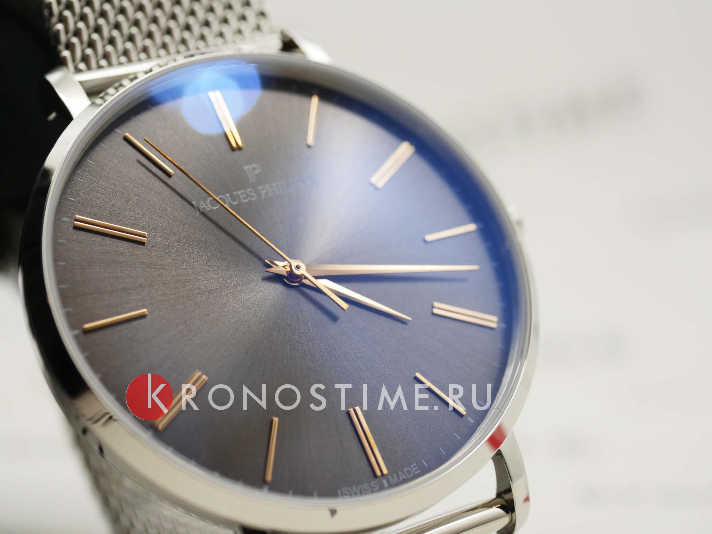 Швейцарские мужские часы Jacques Philippe Base JPQGS071246, кварцевый механизм с высокой точностью. Сапфировое стеклоСапфировое стеклоПрочный и надёжный материал из кристалла сапфира синтетического происхождения, характеризующийся особой твёрдостью и устойчивостью к царапинам и повреждениям. устойчивое к появлению царапин, обладающее высокой прозрачностью. Корпус часов изготовлен из нержавеющей стали. Класс водозащиты: 30 метров, позволит защитить корпус от случайных брызг или капель дождя. Стальной браслет на раскладном замкеРаскладной замокДанный вариант застежки используется только на часах с металлическим браслетом. Отличительная особенность такого крепления в том, что длина браслета становится универсальной и вы можете самостоятельно отрегулировать нужный вам размер – застежка просто двигается по браслету часов..