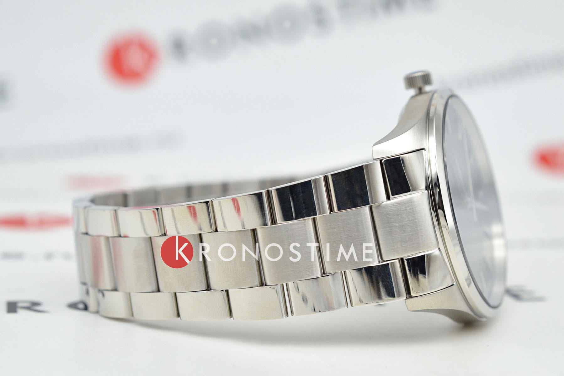 Стальной браслет на застёжке-бабочке с кнопкамиЗастёжка "бабочка"Такой вид застёжки дополняется предохранителями, помогающими избежать случайного раскрытия браслета. Обладают изящным исполнением. , который подчёркивает деловой характер модели и обеспечивает комфортную посадку на запястье. Водозащита до 100 ATM позволит плавать, нырять и заниматься другими водными видами спорта.