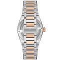 Водозащита 100 метров (10 ATM) позволяет использовать часы для плавания и других водных видов спорта. Браслет из нержавеющей стали с PVD-покрытиемPVDУльтратонкое покрытие наносится в технике вакуумного напыления, сочетает в себе нитрид титана особой прочности со слоем золота или оксида хрома. Несёт в себе декоративную или защитную функцию. и застёжкой бабочкаЗастёжка "бабочка"Такой вид застёжки дополняется предохранителями, помогающими избежать случайного раскрытия браслета. Обладают изящным исполнением. обеспечивает комфортное ношение и надёжную фиксацию на запястье.