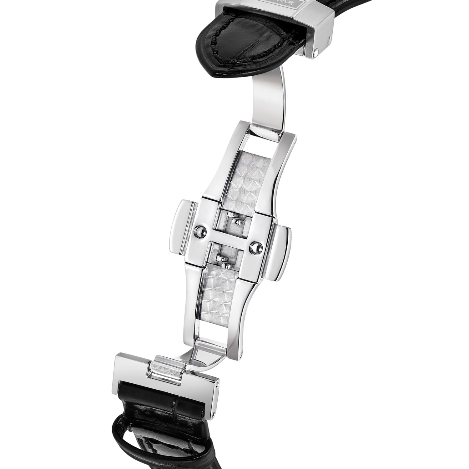 Женские швейцарские часы JAGUAR Automatic Woman J1000/A, механизм — автоподзавод. В часах с автоподзаводом заводная головка практически не используется, что исключает истирание ее материала и материала корпуса. Сапфировое стеклоСапфировое стеклоПрочный и надёжный материал из кристалла сапфира синтетического происхождения, характеризующийся особой твёрдостью и устойчивостью к царапинам и повреждениям. устойчивое к мелким механическим повреждениям. Корпус часов изготовлен из нержавеющей стали. Окошко даты находится в положении 6 часов. Класс водозащиты: 50 метров, позволит защитить корпус от случайных брызг или капель дождя. Кожаный ремешок на застёжке-бабочке с кнопкамиЗастёжка "бабочка"Такой вид застёжки дополняется предохранителями, помогающими избежать случайного раскрытия браслета. Обладают изящным исполнением. .