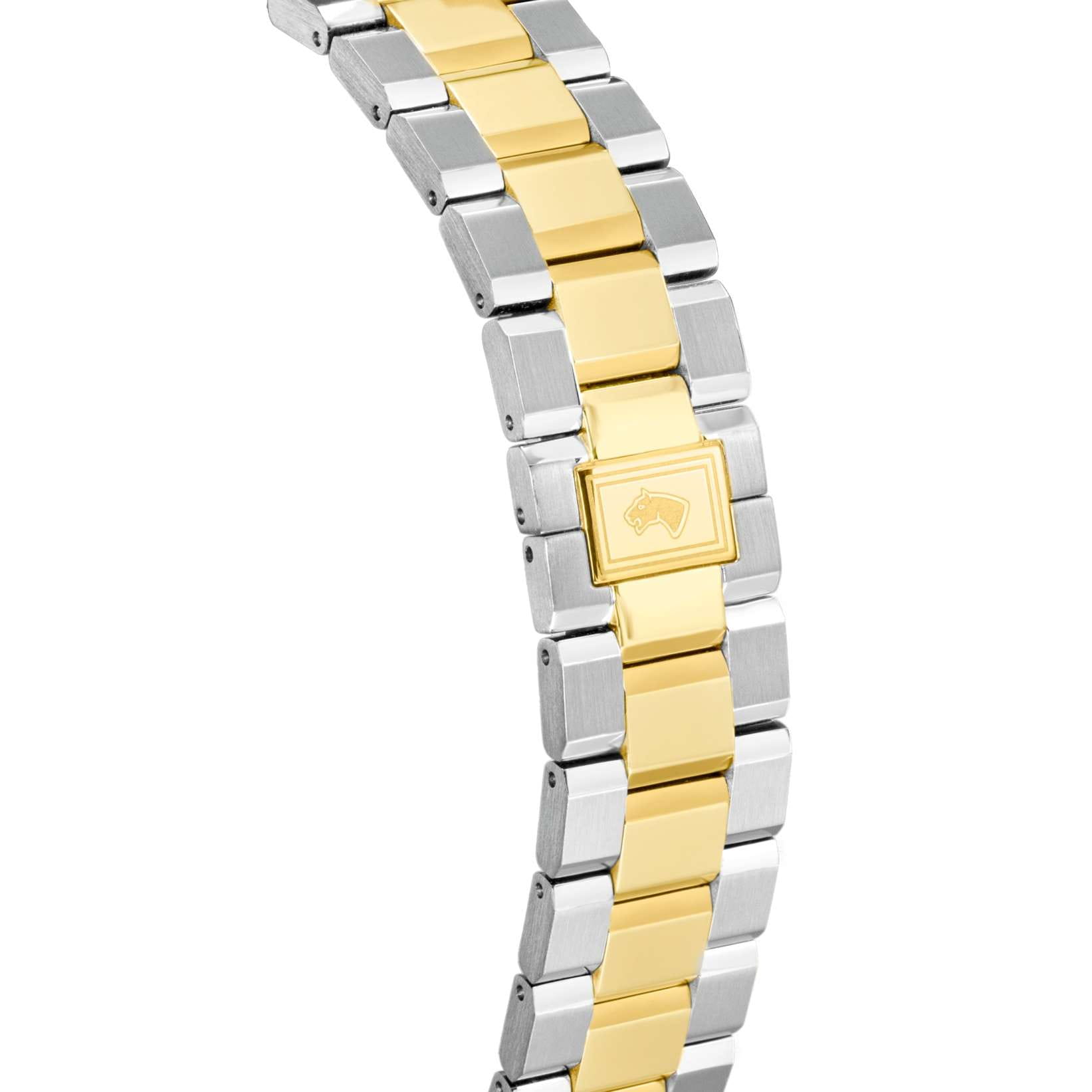 Часы Jaguar ESSENTIA JJ1043/2 - это воплощение элегантности и точности, созданное для современного мужчины. Эта швейцарская модель отличается изысканным дизайном и высоким качеством исполнения. Корпус часов выполнен из нержавеющей стали серебристого цвета, что придает им благородный и стильный вид. Циферблат защищен сапфировым стекломСапфировое стеклоПрочный и надёжный материал из кристалла сапфира синтетического происхождения, характеризующийся особой твёрдостью и устойчивостью к царапинам и повреждениям., которое славится своей прочностью и устойчивостью к царапинам, обеспечивая долговечность и безупречный внешний вид часов. Неподвижный золотистый безельБезельВнешний ободок, закрепляющий стекло. В спортивных часах так называется поворотное кольцо с делениями на циферблате, выполняет роль таймера – замеряет отрезки времени на шкале. Неподвижный безель – элемент декора. Однонаправленно вращающийся безель на дайверских часах позволяет фиксировать моменты погружения и выныривания на поверхность.. Браслет, также изготовленный из нержавеющей стали с золотистым PVD-покрытиемPVDУльтратонкое покрытие наносится в технике вакуумного напыления, сочетает в себе нитрид титана особой прочности со слоем золота или оксида хрома. Несёт в себе декоративную или защитную функцию., гармонично сочетается с корпусом, создавая целостный и утонченный образ. Диаметр корпуса составляет 40 мм, что делает часы идеальными для мужского запястья. Модель ESSENTIA J1043/2 оснащена швейцарским кварцевым механизмом, гарантирующим высокую точность хода, а также функцией отображения даты, что добавляет практичности этому стильному аксессуару. Часы Jaguar J1043/2 - это не просто инструмент для измерения времени, но и статусный аксессуар, который подчеркнет безупречный вкус и уверенность своего владельца. Они идеально подойдут как для деловых встреч, так и для особых случаев, всегда оставаясь верным спутником современного мужчины, ценящего качество и стиль. Браслет имеет скрытую застёжку «бабочка» с кнопкамиЗастёжка "бабочка"Такой вид застёжки дополняется предохранителями, помогающими избежать случайного раскрытия браслета. Обладают изящным исполнением. .