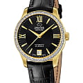 Женские швейцарские часы Jaguar Automatic Woman J999/B, механизм — автоподзавод. В часах с автоподзаводом заводная головка практически не используется, что исключает истирание ее материала и материала корпуса. Сапфировое стеклоСапфировое стеклоПрочный и надёжный материал из кристалла сапфира синтетического происхождения, характеризующийся особой твёрдостью и устойчивостью к царапинам и повреждениям. устойчивое к мелким механическим повреждениям. Корпус и браслет часов изготовлены из нержавеющей стали. Окошко даты находится в положении 6 часов. Класс водозащиты: 50 метров, позволит защитить корпус от случайных брызг или капель дождя. Кожаный ремешок на застёжке-бабочке с кнопкамиЗастёжка "бабочка"Такой вид застёжки дополняется предохранителями, помогающими избежать случайного раскрытия браслета. Обладают изящным исполнением. . БезельБезельВнешний ободок, закрепляющий стекло. В спортивных часах так называется поворотное кольцо с делениями на циферблате, выполняет роль таймера – замеряет отрезки времени на шкале. Неподвижный безель – элемент декора. Однонаправленно вращающийся безель на дайверских часах позволяет фиксировать моменты погружения и выныривания на поверхность. с PVD-покрытиемPVDУльтратонкое покрытие наносится в технике вакуумного напыления, сочетает в себе нитрид титана особой прочности со слоем золота или оксида хрома. Несёт в себе декоративную или защитную функцию. инкрустирован цирконием.