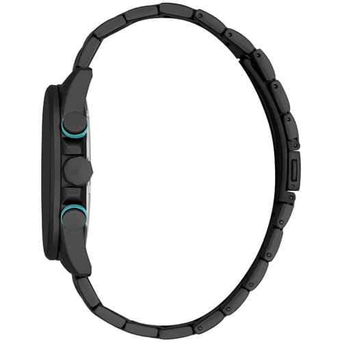 JUST CAVALLI JC1G348M0085 — стильные итальянские часы с функцией хронографаХронографФункция позволяет измерять отрезки времени с особой точностью: часы, минуты, секунды. Верным признаком хронографа является наличие на циферблате 3 дополнительных окошек-счётчиков., которые сочетают в себе элегантность и современный функционал. Круглый корпус диаметром 45 мм выполнен из нержавеющей стали с PVD-покрытиемPVDУльтратонкое покрытие наносится в технике вакуумного напыления, сочетает в себе нитрид титана особой прочности со слоем золота или оксида хрома. Несёт в себе декоративную или защитную функцию., толщина корпуса составляет 11 мм, что придает модели выразительный внешний вид и надежную защиту от внешних воздействий. Часы оснащены кварцевым механизмом, также обладают функцией отображения даты, что делает их удобными для ежедневного использования. Минеральное стеклоМинеральное стеклоМинеральное стекло представляет собой искусственно выращенный минерал кварца. Такое стекло отличается особой устойчивостью к повреждениям и царапинам. Уступает по некоторым качествам сапфировому стеклу. защищает часы от царапин, а водозащита 100 метров идеально подходит для повседневного ношения. Стрелки с люминесцентным покрытиемЛюминесцентное покрытиеПозволяет считывать показания времени в темноте. Производители наносят на стрелки, часовые индексы, безель или поверхность циферблата светонакопительный состав, дающий холодное свечение.. Стальной браслет на раскладной застёжкеРаскладная застёжкаТакой тип застёжки используется только на браслетах из металла. Она никогда не раскрывается полностью, происходит разделение на 2 и более частей. Раскладывающая застёжка снизит вероятность потери часов к минимуму. обеспечивает комфортное ношение.