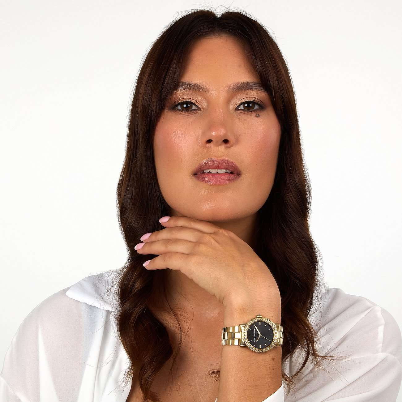 Женские элегантные часы Karl Lagerfeld Crystals R0553100508, кварцевый механизм с высокой точностью. Минеральное стеклоМинеральное стеклоМинеральное стекло представляет собой искусственно выращенный минерал кварца. Такое стекло отличается особой устойчивостью к повреждениям и царапинам. Уступает по некоторым качествам сапфировому стеклу. устойчивое к появлению царапин, обладающее высокой прозрачностью. Изысканный корпус изготовлен из нержавеющей стали с IP-покрытиемIP-покрытиеМетод ионного напыления. Демонстрирует повышенную устойчивость к истиранию, окислению и химическим веществам. Под воздействием высокого давления и температуры около 1500°C молекулы металла надёжно соединяются с частицами корпуса часов.. Лаконичные центральные часовая, минутная и секундная стрелки. Водонепроницаемость 5 АТМ позволяет использовать часы в повседневных условиях — при мытье рук или под лёгким дождём. Браслет выполнен из стали с IP-покрытиемIP-покрытиеМетод ионного напыления. Демонстрирует повышенную устойчивость к истиранию, окислению и химическим веществам. Под воздействием высокого давления и температуры около 1500°C молекулы металла надёжно соединяются с частицами корпуса часов. и оснащён раскладной застёжкойРаскладная застёжкаТакой тип застёжки используется только на браслетах из металла. Она никогда не раскрывается полностью, происходит разделение на 2 и более частей. Раскладывающая застёжка снизит вероятность потери часов к минимуму., обеспечивающей комфорт и уверенную фиксацию на запястье, а также добавляя завершающий штрих к этому стильному аксессуару. БезельБезельВнешний ободок, закрепляющий стекло. В спортивных часах так называется поворотное кольцо с делениями на циферблате, выполняет роль таймера – замеряет отрезки времени на шкале. Неподвижный безель – элемент декора. Однонаправленно вращающийся безель на дайверских часах позволяет фиксировать моменты погружения и выныривания на поверхность. с кристаллами подчёркивает изысканный характер часов, создавая универсальный образ, подходящий как для повседневных ситуаций, так и для особых случаев.