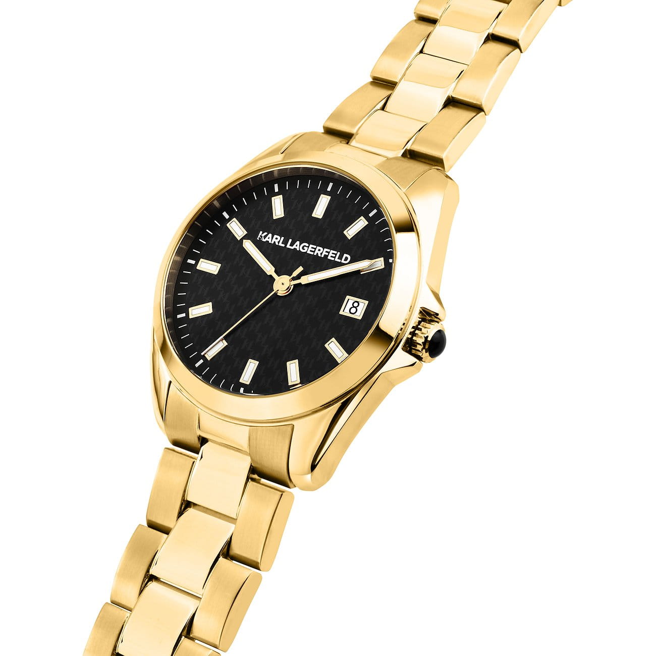 Женские элегантные часы Karl Lagerfeld Round Essentials R0553101506, кварцевый механизм с высокой точностью. Минеральное стеклоМинеральное стеклоМинеральное стекло представляет собой искусственно выращенный минерал кварца. Такое стекло отличается особой устойчивостью к повреждениям и царапинам. Уступает по некоторым качествам сапфировому стеклу. устойчивое к появлению царапин, обладающее высокой прозрачностью. Изысканный корпус изготовлен из нержавеющей стали с IP-покрытиемIP-покрытиеМетод ионного напыления. Демонстрирует повышенную устойчивость к истиранию, окислению и химическим веществам. Под воздействием высокого давления и температуры около 1500°C молекулы металла надёжно соединяются с частицами корпуса часов.. Лаконичные центральные часовая, минутная и секундная стрелки. Водонепроницаемость 5 АТМ позволяет использовать часы в повседневных условиях — при мытье рук или под лёгким дождём. Стальной браслет с IP-покрытиемIP-покрытиеМетод ионного напыления. Демонстрирует повышенную устойчивость к истиранию, окислению и химическим веществам. Под воздействием высокого давления и температуры около 1500°C молекулы металла надёжно соединяются с частицами корпуса часов. c раскладной застёжкойРаскладная застёжкаТакой тип застёжки используется только на браслетах из металла. Она никогда не раскрывается полностью, происходит разделение на 2 и более частей. Раскладывающая застёжка снизит вероятность потери часов к минимуму., обеспечивающей комфорт и уверенную фиксацию на запястье, а также добавляя завершающий штрих к этому стильному аксессуару. Стрелки и метки оснащены люминесцентным покрытиемЛюминесцентное покрытиеПозволяет считывать показания времени в темноте. Производители наносят на стрелки, часовые индексы, безель или поверхность циферблата светонакопительный состав, дающий холодное свечение., обеспечивающим хорошую читаемость в темноте. Циферблат подчёркивает изысканный характер часов, создавая универсальный образ, подходящий как для повседневных ситуаций, так и для особых случаев. Аккуратное окошко даты на отметке «3 часов».