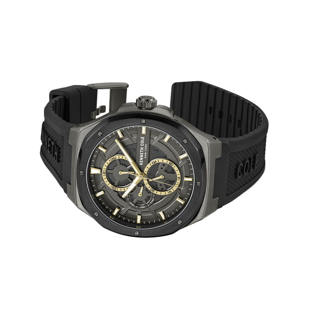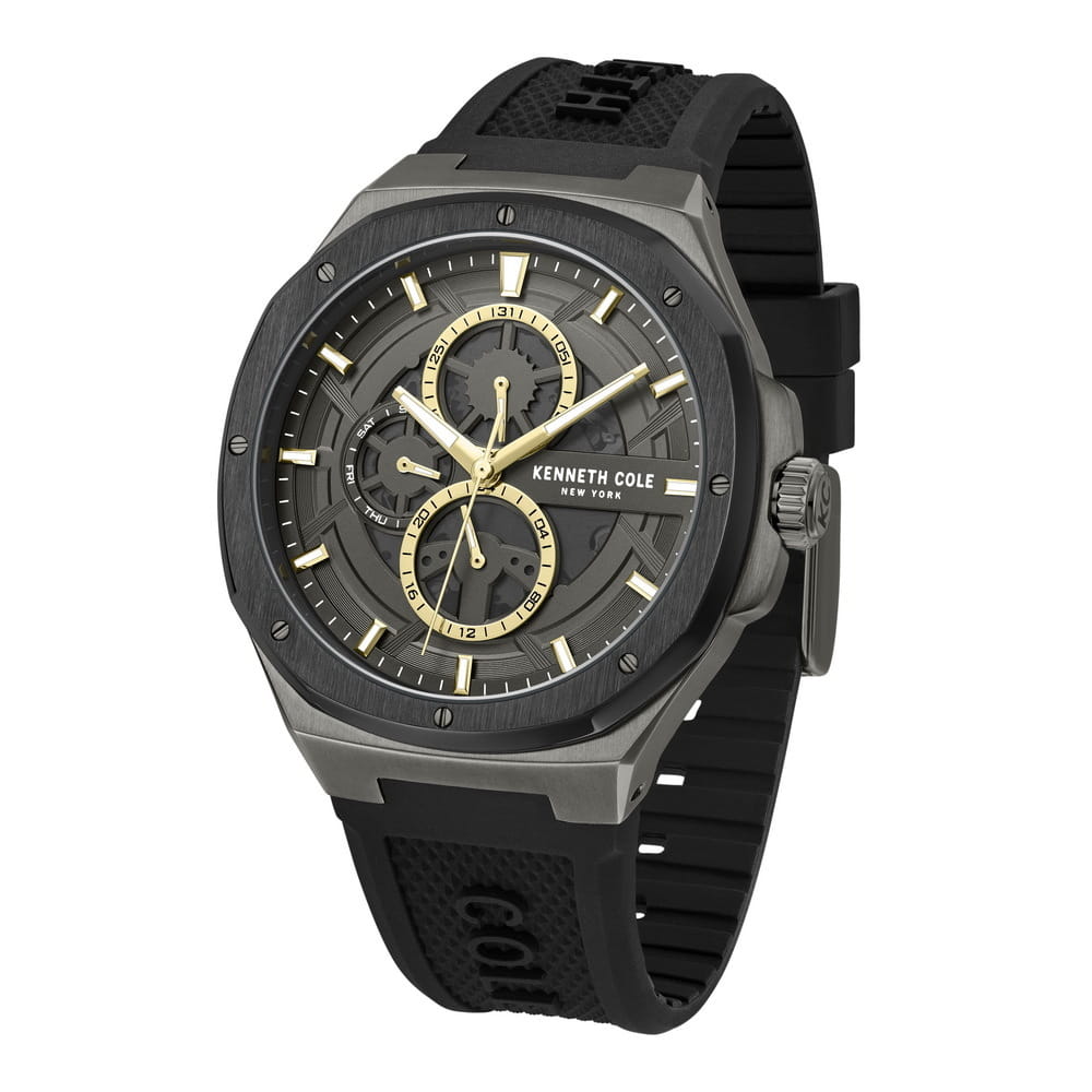 Мужские кварцевые часы Kenneth Cole KCWGQ0047202 — это стильный и функциональный аксессуар с выразительным дизайном. Корпус размером 43 мм выполнен из стали с IP-покрытиемIP-покрытиеМетод ионного напыления. Демонстрирует повышенную устойчивость к истиранию, окислению и химическим веществам. Под воздействием высокого давления и температуры около 1500°C молекулы металла надёжно соединяются с частицами корпуса часов. в стально-чёрных тонах. Циферблат серого цвета оформлен метками в виде штрихов. Стрелки и метки оснащены люминесцентным покрытиемЛюминесцентное покрытиеПозволяет считывать показания времени в темноте. Производители наносят на стрелки, часовые индексы, безель или поверхность циферблата светонакопительный состав, дающий холодное свечение., обеспечивающим хорошую читаемость в темноте. Циферблат защищён минеральным стекломМинеральное стеклоМинеральное стекло представляет собой искусственно выращенный минерал кварца. Такое стекло отличается особой устойчивостью к повреждениям и царапинам. Уступает по некоторым качествам сапфировому стеклу.. Часы оснащены силиконовым ремешком чёрного цвета со стандартной застёжкой. Водонепроницаемость 50 м позволяет использовать часы для плавания и повседневного ношения. Надёжный выбор для тех, кто ценит современный стиль и функциональность.