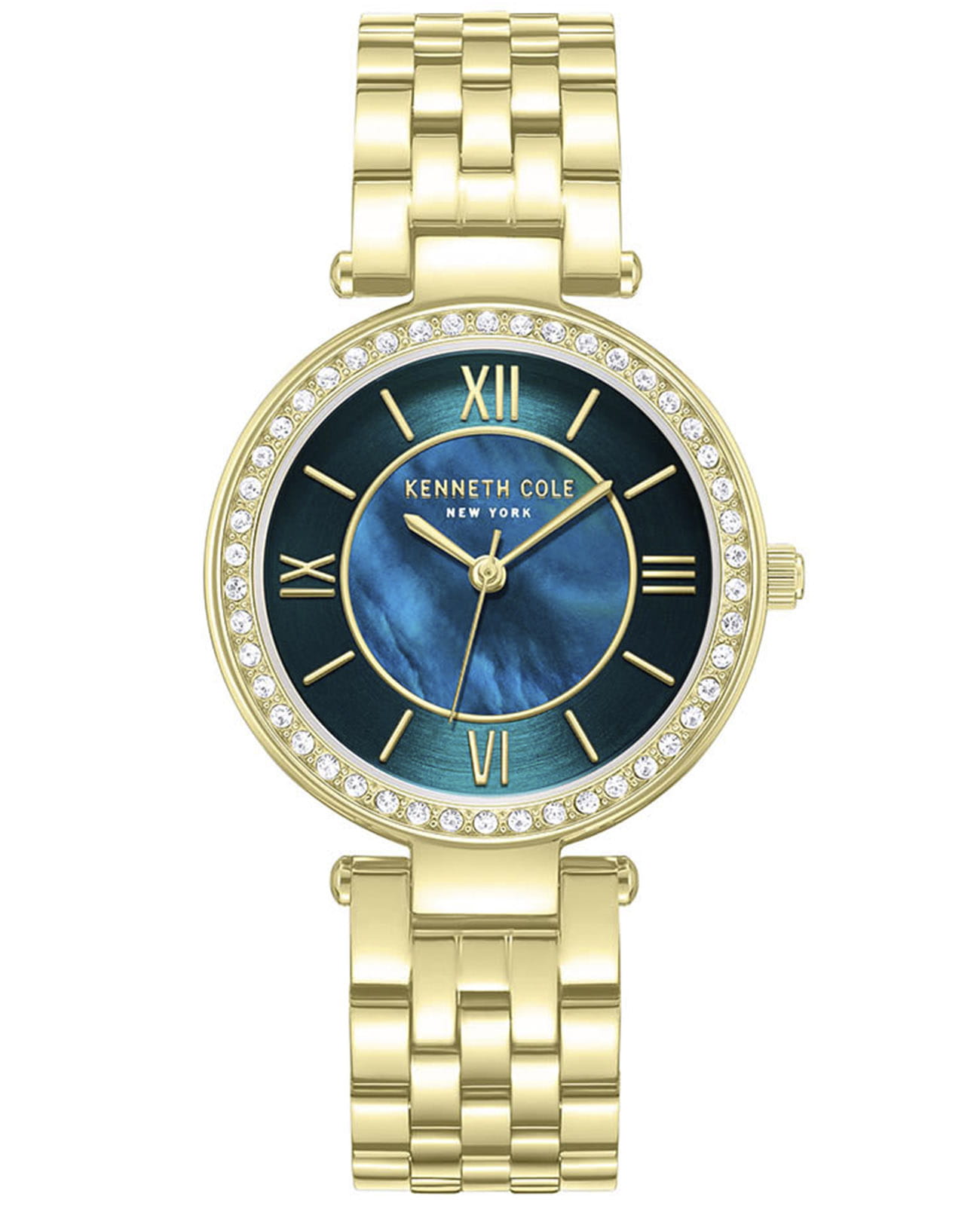 Женские кварцевые часы Kenneth Cole KCWLG0062202 — это изысканный аксессуар, сочетающий элегантность и современный дизайн. Корпус диаметром 32 мм выполнен из стали с IP-покрытиемIP-покрытиеМетод ионного напыления. Демонстрирует повышенную устойчивость к истиранию, окислению и химическим веществам. Под воздействием высокого давления и температуры около 1500°C молекулы металла надёжно соединяются с частицами корпуса часов. золотого цвета. Циферблат синего цвета украшен вставками из перламутра и стразов из стекла, придающими модели сияние и глубину. Индексы представлены в виде штрихов и римских цифр. Циферблат защищён минеральным стекломМинеральное стеклоМинеральное стекло представляет собой искусственно выращенный минерал кварца. Такое стекло отличается особой устойчивостью к повреждениям и царапинам. Уступает по некоторым качествам сапфировому стеклу.. Часы оснащены стальным браслетом с IP-покрытиемIP-покрытиеМетод ионного напыления. Демонстрирует повышенную устойчивость к истиранию, окислению и химическим веществам. Под воздействием высокого давления и температуры около 1500°C молекулы металла надёжно соединяются с частицами корпуса часов. на раскладной застёжкеРаскладная застёжкаТакой тип застёжки используется только на браслетах из металла. Она никогда не раскрывается полностью, происходит разделение на 2 и более частей. Раскладывающая застёжка снизит вероятность потери часов к минимуму.. Водонепроницаемость 30 м позволяет использовать часы в повседневных условиях, защищая от случайных брызг и капель дождя. Утончённый стиль и внимание к деталям делают эти часы идеальным выбором для повседневного и торжественного образа.