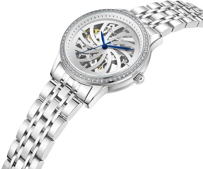 Американские женские часы-скелетоны с минеральным стекломМинеральное стеклоМинеральное стекло представляет собой искусственно выращенный минерал кварца. Такое стекло отличается особой устойчивостью к повреждениям и царапинам. Уступает по некоторым качествам сапфировому стеклу. Kenneth Cole New York KCWLL0016604, механический механизм (автоматический калибр) с высокой точностью. Класс водозащиты: 30 метров, позволит защитить корпус от случайных брызг или капель дождя. Корпус часов изготовлен из стали. Стальной браслет на раскладной застёжкеРаскладная застёжкаТакой тип застёжки используется только на браслетах из металла. Она никогда не раскрывается полностью, происходит разделение на 2 и более частей. Раскладывающая застёжка снизит вероятность потери часов к минимуму..