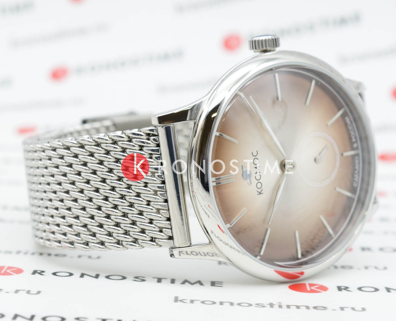 Мужские наручные часы Космос Сириус K 021.10.30 — это сочетание традиций часового искусства 60-70-х годов и футуристического дизайна, вдохновленного космическими исследованиями. Они не только служат напоминанием о прошлом, но и побуждают задуматься о будущем, позволяя наслаждаться качеством и смыслом, вложенными в каждую деталь. Полированный корпус часов выполнен в виде силуэта летающей тарелки благодаря выпуклым формам стекла и нижней части корпуса. Стальные ушки, которые напоминают опоры летающей тарелки, завершает общий образ. На задней крышке часов выгравирован фантазийный сюжет – космическая станция будущего. Бежевый циферблат в ретро-стиле с выгнутыми краями требует сложной технологии производства, что делает их аналогами часов прошлых эпох. Кончик секундной стрелки изогнут так, чтобы гармонировать с формой циферблата. Выпуклый градиентный циферблат украшен шлифовкой, напоминающей солнечные лучи, и ручными индексами, надежно закрепленными на двух штифтах. Специальное люминесцентное покрытиеЛюминесцентное покрытиеПозволяет считывать показания времени в темноте. Производители наносят на стрелки, часовые индексы, безель или поверхность циферблата светонакопительный состав, дающий холодное свечение. нанесено на часовую, минутную и секундную стрелки, а также на пунктирные метки и окантовку циферблата, создавая эффект светящегося изображения в темноте. Форма минерального стеклаМинеральное стеклоМинеральное стекло представляет собой искусственно выращенный минерал кварца. Такое стекло отличается особой устойчивостью к повреждениям и царапинам. Уступает по некоторым качествам сапфировому стеклу. также тщательно продумана — оно изогнуто как снаружи, так и изнутри. Эта конструкция предотвращает искажение изображения на циферблате, в отличие от традиционных стекол с прямой внутренней частью, которые могут создавать оптические искажения. Часы комплектуются стальным браслетом миланского плетения, который дополнительно защищает от случайного падения. Корпус и браслет часов изготовлены из гипоаллергенной стали, что обеспечивает комфорт при ношении. Заводная головка, застежка и ремешок украшены фирменным логотипом, подчеркивающим индивидуальность данной модели.