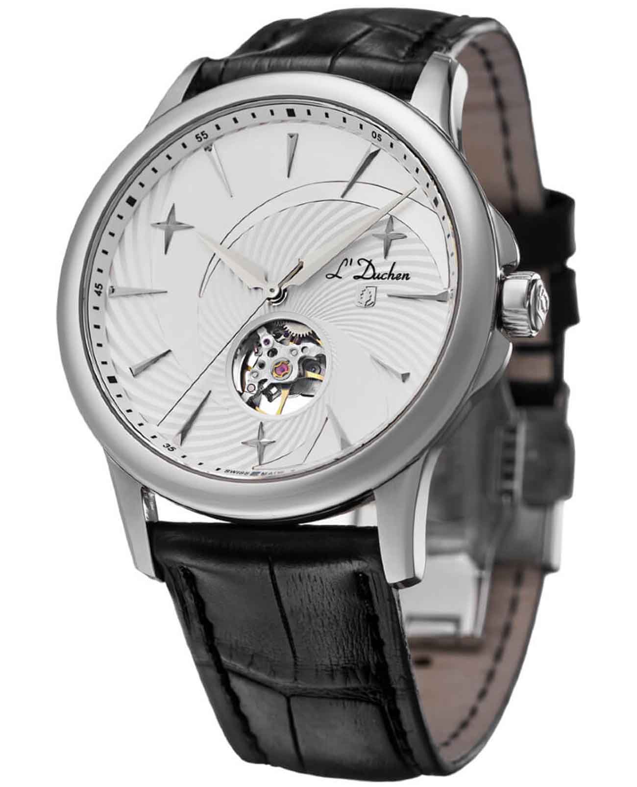 Мужские механические швейцарские часы с автоподзаводом LDuchen Supernova D 154.11.33, кварцевый механизм с высокой точностью. Сапфировое стеклоСапфировое стеклоПрочный и надёжный материал из кристалла сапфира синтетического происхождения, характеризующийся особой твёрдостью и устойчивостью к царапинам и повреждениям. устойчивое к появлению царапин, обладающее высокой прозрачностью. Корпус часов выполнен из нержавеющей стали. Класс водозащиты: 50 метров, позволит защитить корпус от случайных брызг или капель дождя. Кожаный ремешок на раскладной застёжкеРаскладная застёжкаТакой тип застёжки используется только на браслетах из металла. Она никогда не раскрывается полностью, происходит разделение на 2 и более частей. Раскладывающая застёжка снизит вероятность потери часов к минимуму..