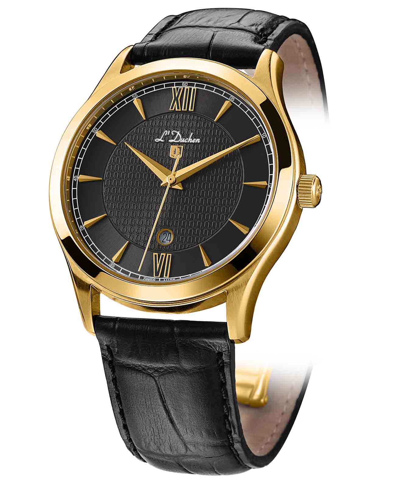 Мужские швейцарские часы L'Duchen Carcassonne D 761.21.11, кварцевый механизм с высокой точностью. Сапфировое стеклоСапфировое стеклоПрочный и надёжный материал из кристалла сапфира синтетического происхождения, характеризующийся особой твёрдостью и устойчивостью к царапинам и повреждениям. устойчивое к появлению царапин, обладающее высокой прозрачностью. Корпус часов выполнен из нержавеющей стали с PVD-покрытиемPVDУльтратонкое покрытие наносится в технике вакуумного напыления, сочетает в себе нитрид титана особой прочности со слоем золота или оксида хрома. Несёт в себе декоративную или защитную функцию.. Класс водозащиты: 50 метров, позволит защитить корпус от случайных брызг или капель дождя. Кожаный ремешок на застёжке «бабочка» с кнопкамиЗастёжка "бабочка"Такой вид застёжки дополняется предохранителями, помогающими избежать случайного раскрытия браслета. Обладают изящным исполнением. .