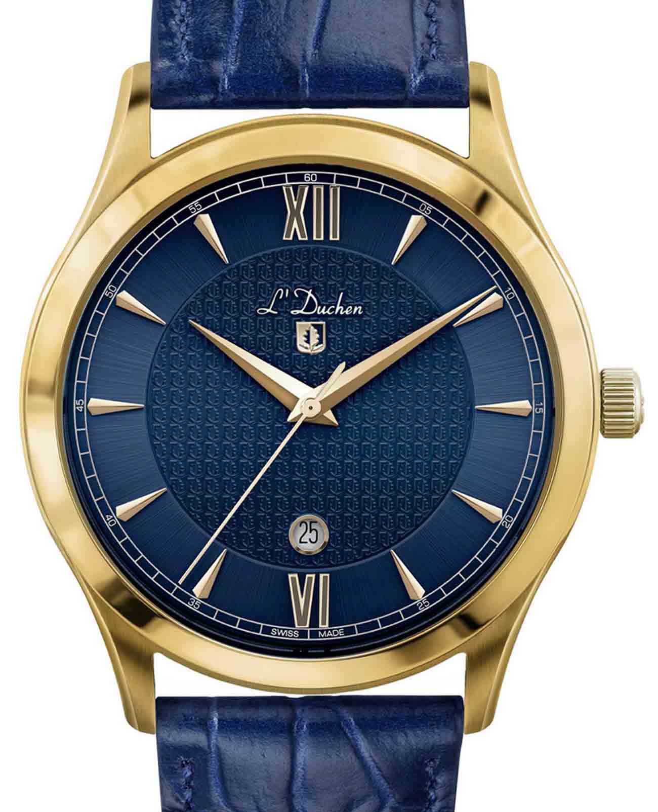 Мужские швейцарские часы L'Duchen Carcassonne D 761.23.17, кварцевый механизм с высокой точностью. Сапфировое стеклоСапфировое стеклоПрочный и надёжный материал из кристалла сапфира синтетического происхождения, характеризующийся особой твёрдостью и устойчивостью к царапинам и повреждениям. устойчивое к появлению царапин, обладающее высокой прозрачностью. Корпус часов выполнен из нержавеющей стали с PVD-покрытиемPVDУльтратонкое покрытие наносится в технике вакуумного напыления, сочетает в себе нитрид титана особой прочности со слоем золота или оксида хрома. Несёт в себе декоративную или защитную функцию.. Класс водозащиты: 50 метров, позволит защитить корпус от случайных брызг или капель дождя. Кожаный ремешок на застёжке «бабочка» с кнопкамиЗастёжка "бабочка"Такой вид застёжки дополняется предохранителями, помогающими избежать случайного раскрытия браслета. Обладают изящным исполнением. .