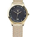 Женские швейцарские часы L'Duchen Grace D 791.21.31 M, кварцевый механизм с высокой точностью. Сапфировое стеклоСапфировое стеклоПрочный и надёжный материал из кристалла сапфира синтетического происхождения, характеризующийся особой твёрдостью и устойчивостью к царапинам и повреждениям. устойчивое к появлению царапин, обладающее высокой прозрачностью. Корпус часов выполнен из нержавеющей стали. Окошко даты находится в положении 6 часов. Класс водозащиты: 50 метров, позволит защитить корпус от случайных брызг или капель дождя. Стальной браслет миланского плетения с PVD-покрытиемPVDУльтратонкое покрытие наносится в технике вакуумного напыления, сочетает в себе нитрид титана особой прочности со слоем золота или оксида хрома. Несёт в себе декоративную или защитную функцию. на раскладном замкеРаскладной замокДанный вариант застежки используется только на часах с металлическим браслетом. Отличительная особенность такого крепления в том, что длина браслета становится универсальной и вы можете самостоятельно отрегулировать нужный вам размер – застежка просто двигается по браслету часов..