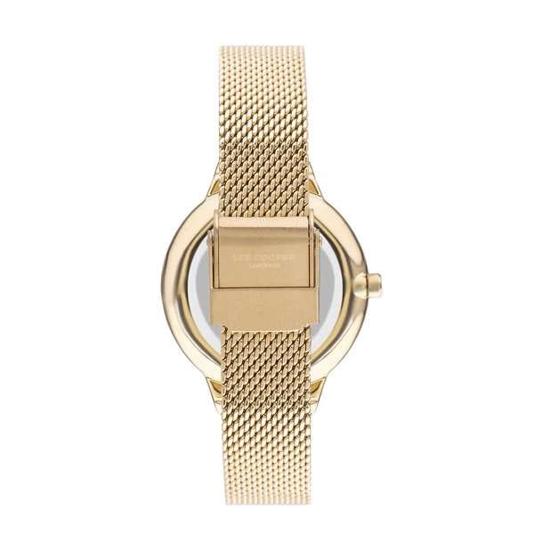 Женские наручные часы Lee Cooper LC07343.130 — это элегантная модель с утончённым дизайном. Корпус диаметром 35 мм выполнен из нержавеющей стали с IP-покрытиемIP-покрытиеМетод ионного напыления. Демонстрирует повышенную устойчивость к истиранию, окислению и химическим веществам. Под воздействием высокого давления и температуры около 1500°C молекулы металла надёжно соединяются с частицами корпуса часов., что придаёт часам изысканный вид. Перламутровый циферблат украшен изящными метками, стрелками и кристаллом на 12 часов обеспечивая удобное считывание времени. Циферблат защищён минеральным стекломМинеральное стеклоМинеральное стекло представляет собой искусственно выращенный минерал кварца. Такое стекло отличается особой устойчивостью к повреждениям и царапинам. Уступает по некоторым качествам сапфировому стеклу., устойчивым к царапинам. Часы работают на кварцевом механизме, обеспечивая точность хода. Браслет из нержавеющей стали с раскладной застёжкойРаскладная застёжкаТакой тип застёжки используется только на браслетах из металла. Она никогда не раскрывается полностью, происходит разделение на 2 и более частей. Раскладывающая застёжка снизит вероятность потери часов к минимуму. гарантирует комфортное ношение и надёжную фиксацию на запястье. Водозащита 30 метров защищает часы от случайных брызг и дождя, делая их подходящими для повседневного использования.