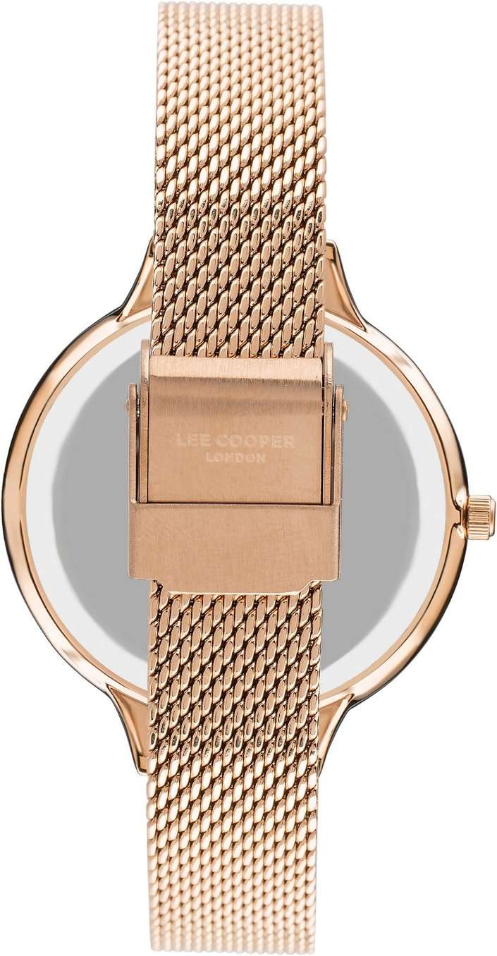 Женские наручные часы Lee Cooper LC07433.420 — это элегантная модель с утончённым дизайном. Корпус диаметром 36 мм выполнен из нержавеющей стали с IP-покрытиемIP-покрытиеМетод ионного напыления. Демонстрирует повышенную устойчивость к истиранию, окислению и химическим веществам. Под воздействием высокого давления и температуры около 1500°C молекулы металла надёжно соединяются с частицами корпуса часов., что придаёт часам изысканный вид. Перламутровый циферблат украшен изящными метками, стрелками и кристаллом на 5 часов обеспечивая удобное считывание времени. Циферблат защищён минеральным стекломМинеральное стеклоМинеральное стекло представляет собой искусственно выращенный минерал кварца. Такое стекло отличается особой устойчивостью к повреждениям и царапинам. Уступает по некоторым качествам сапфировому стеклу., устойчивым к царапинам. Часы работают на кварцевом механизме, обеспечивая точность хода. Браслет из нержавеющей стали с раскладной застёжкойРаскладная застёжкаТакой тип застёжки используется только на браслетах из металла. Она никогда не раскрывается полностью, происходит разделение на 2 и более частей. Раскладывающая застёжка снизит вероятность потери часов к минимуму. гарантирует комфортное ношение и надёжную фиксацию на запястье. Водозащита 30 метров защищает часы от случайных брызг и дождя, делая их подходящими для повседневного использования.